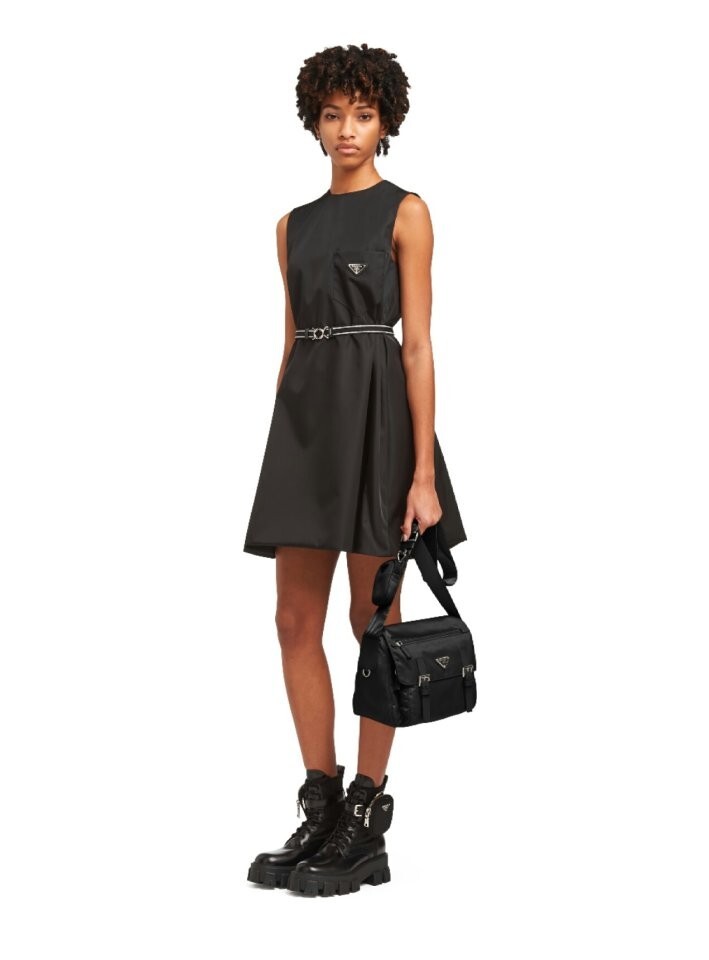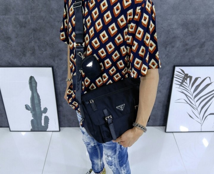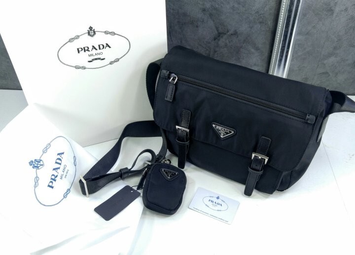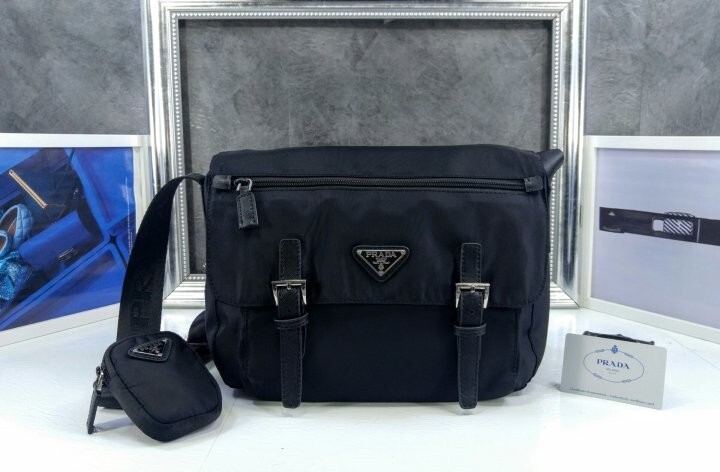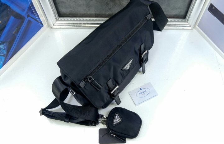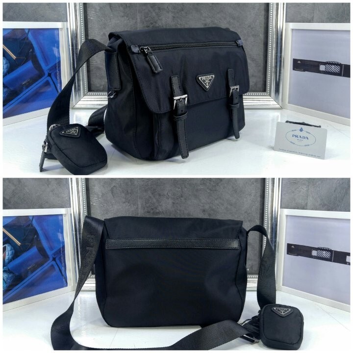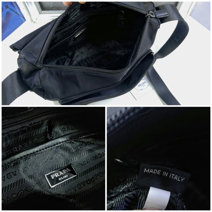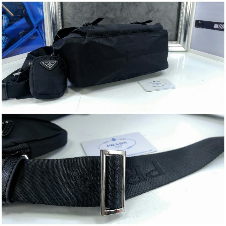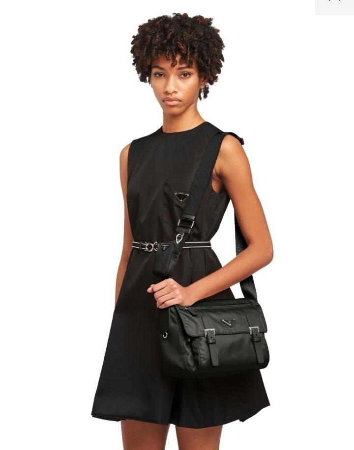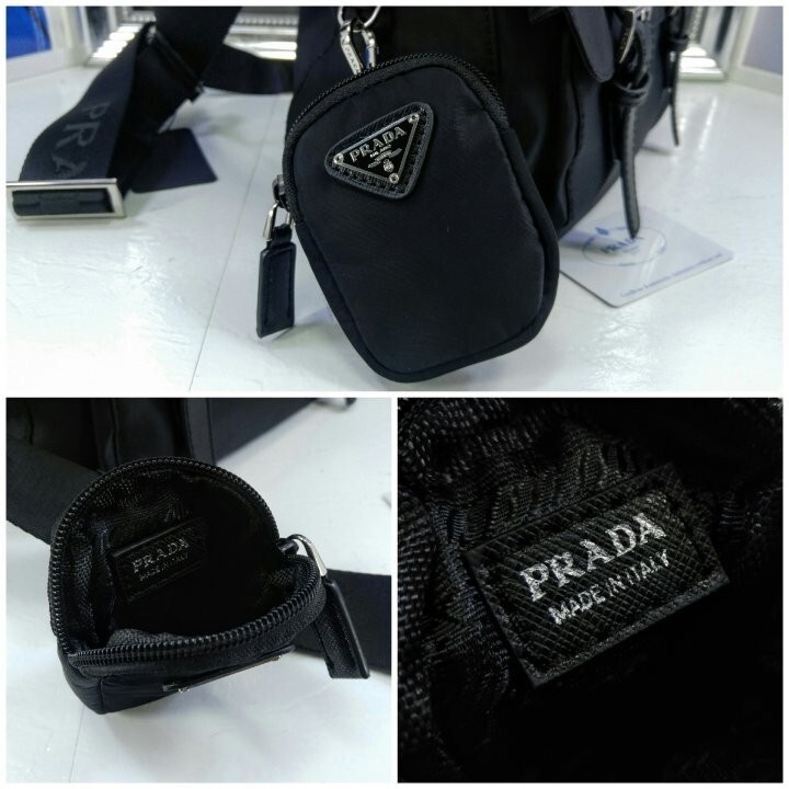 리나일론 소재의 숄더 백으로, 넓은 수납공간과 포켓이 특징이며 프라다 컬렉션의 아이코닉한 액세서리인 탈부착형 파우치로 디자인을 업그레이드했습니다.