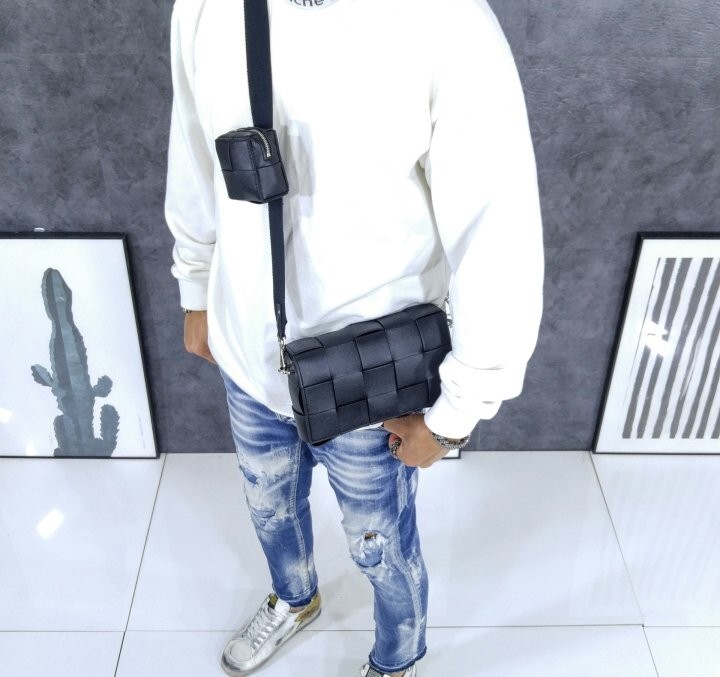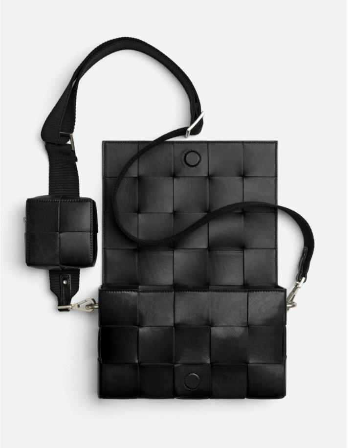• 가죽 소재를 인트레치오 위빙으로 완성한 미디엄 크로스바디 백 • 가죽 소재를 인트레치오 위빙으로 완성한 슬라이드 온 에어팟 지퍼 파우치와 길이 조절 및 탈착 가능한 캔버스 스트랩 • 한 개의 내부 지퍼 포켓 • 자석 잠금장치 •소재: 100% 송아지가죽 • 안감: 인트레치오 위빙으로 완성한 카프스킨 소재를 덧댄 내부 • 컬러: 블랙 • 하드웨어: 실버 마감