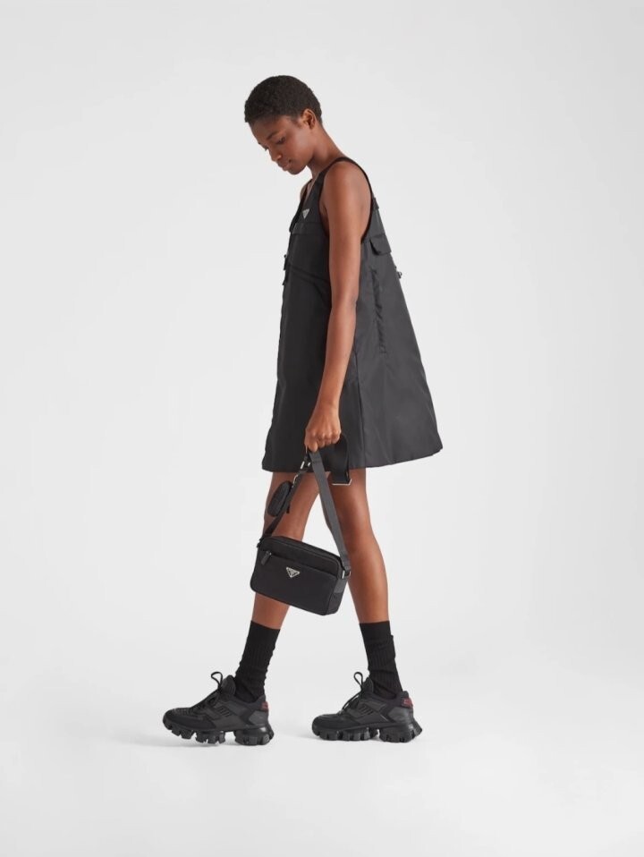기능성과 매끈한 라인이 어우러진 숄더 백으로, 컴팩트한 직사각형 디자인은 스트리트웨어 세계를 연상시킵니다. 에나멜 메탈 트라이앵글 로고와 현대적인 스타일을 강조하는 탈부착형 파우치로 액센트를 주었으며, 해양에서 수거하여 재생하고 정화하여 얻은 플라스틱 소재로 만든 혁신적인 리나일론 패브릭으로 아이템을 제작했습니다.