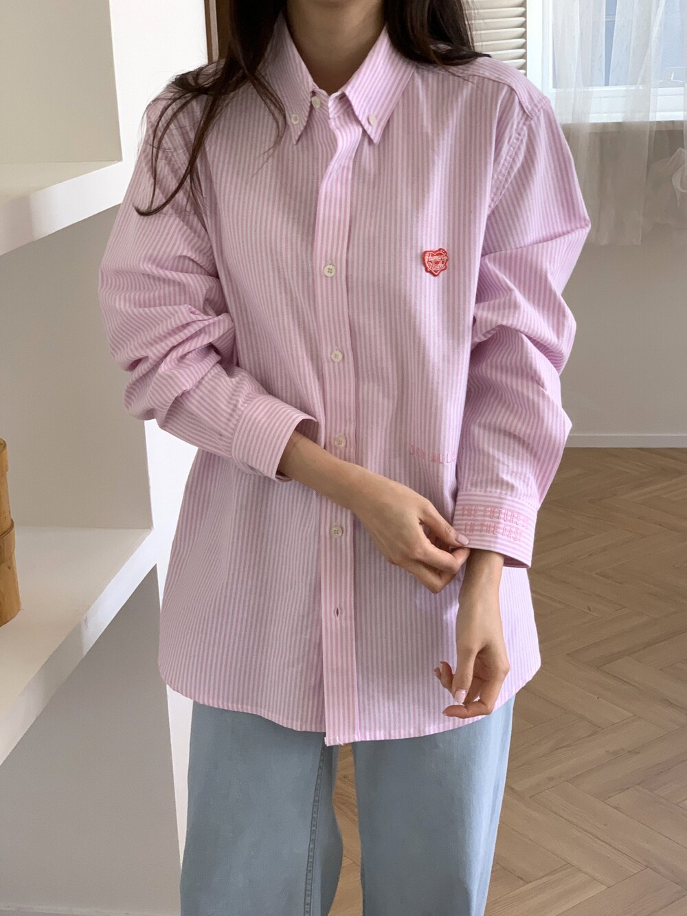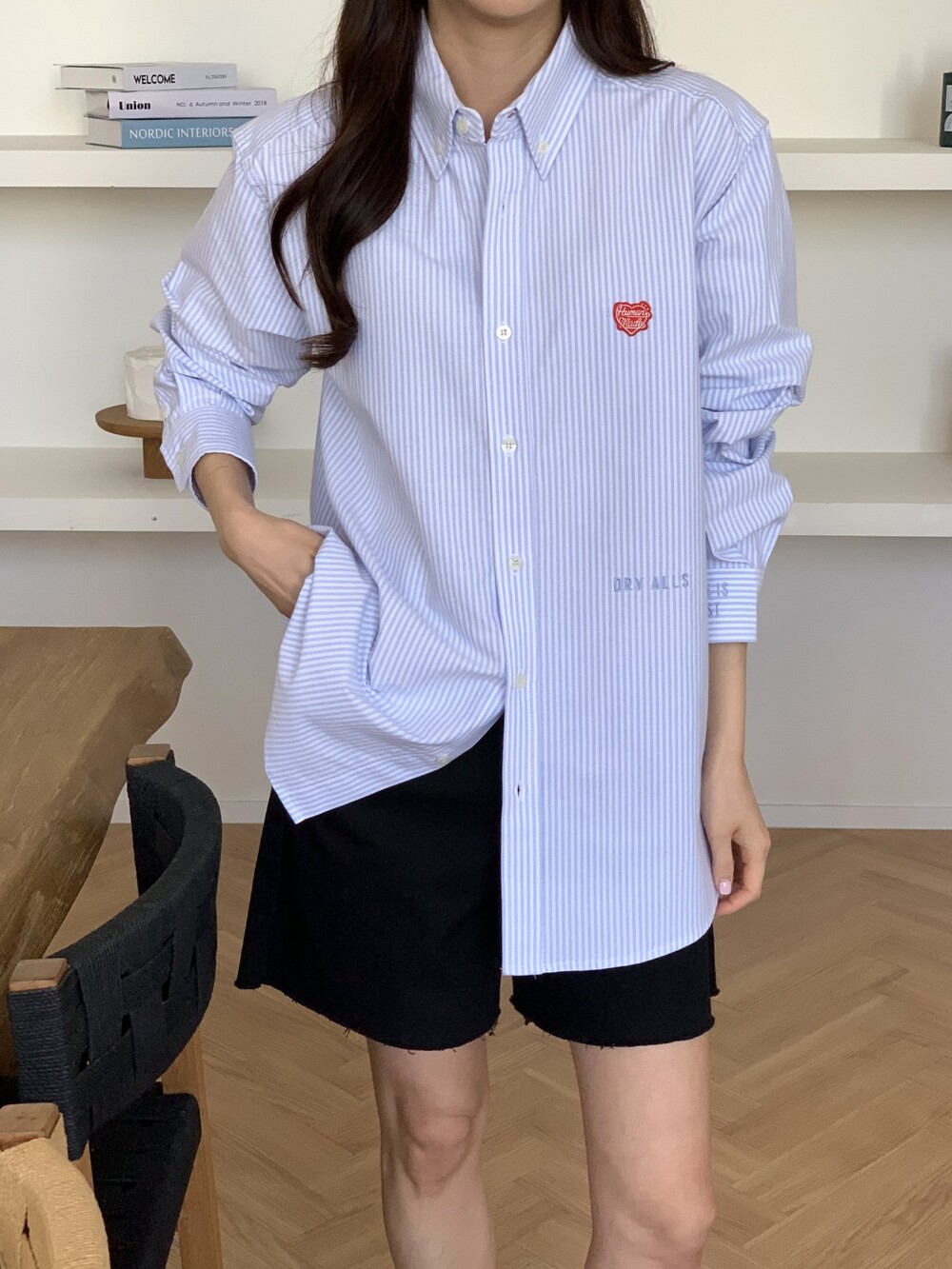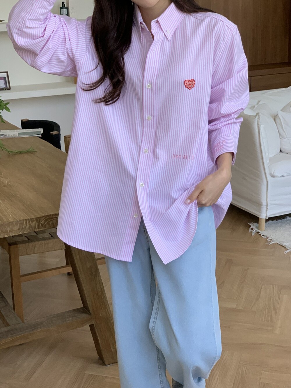 #HU 남녀공용 스트라이프 옥스포트 셔츠 i