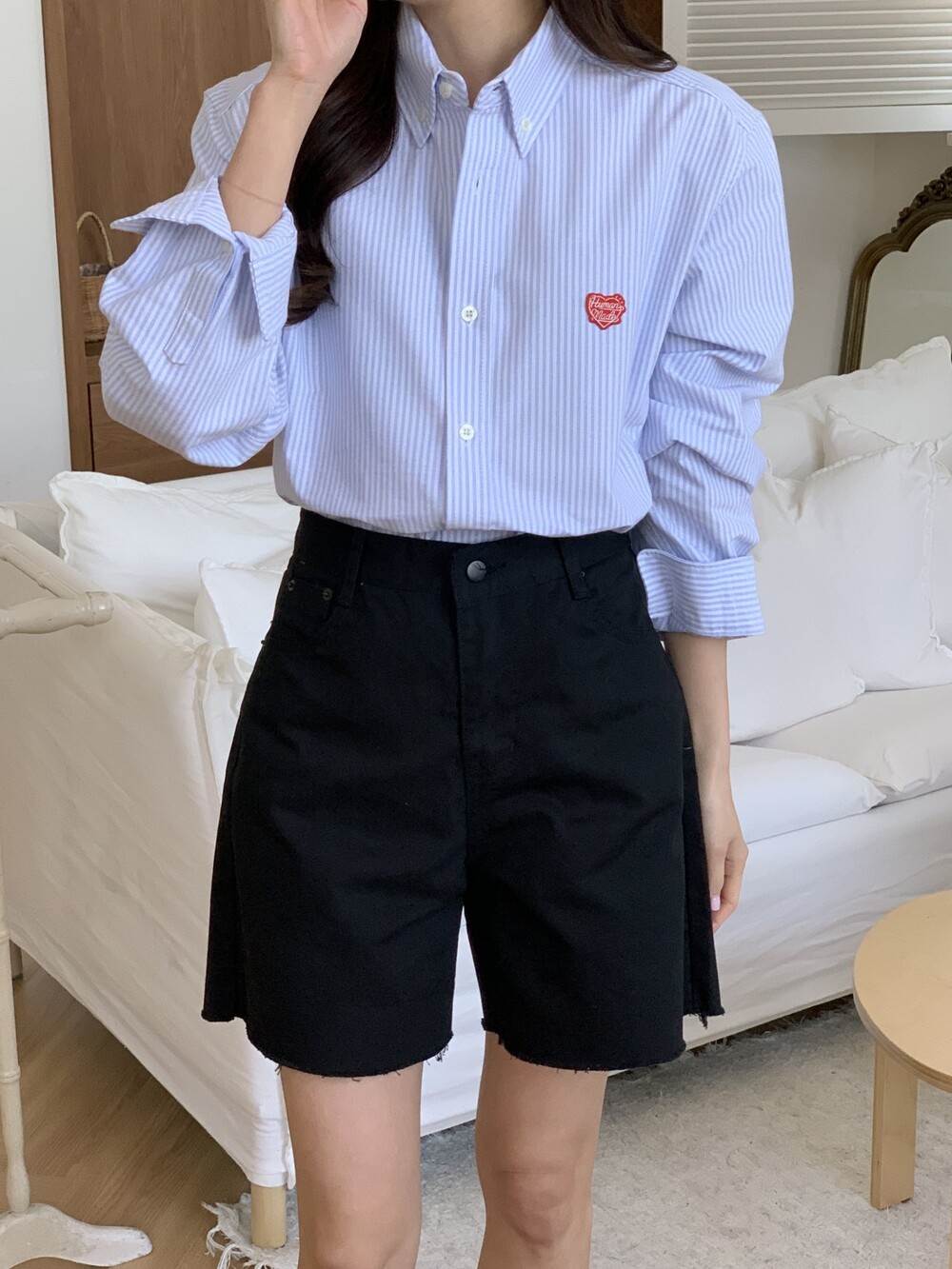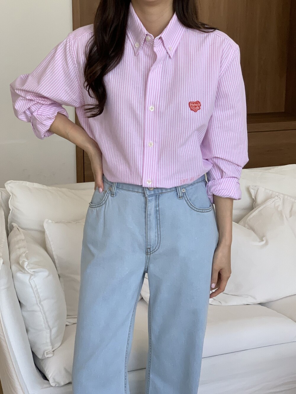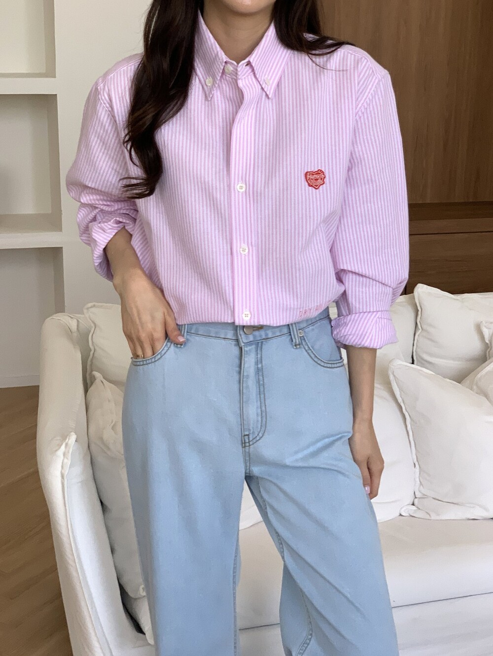 #HU 남녀공용 스트라이프 옥스포트 셔츠 i