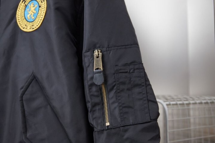 로고 패치 셔링 봄버 자켓