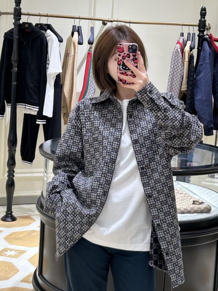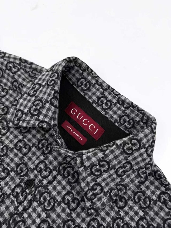 GG 깅엄 코튼 자카드 셔츠
