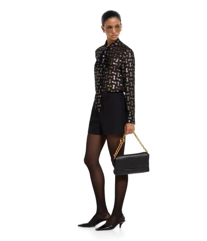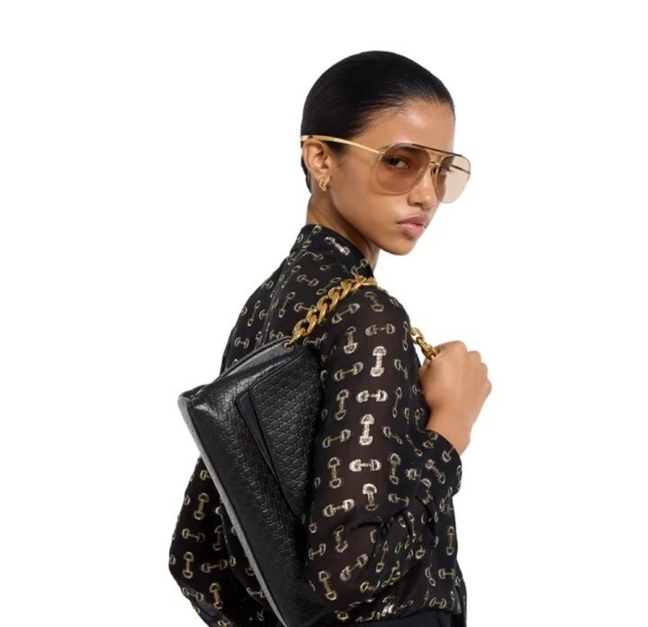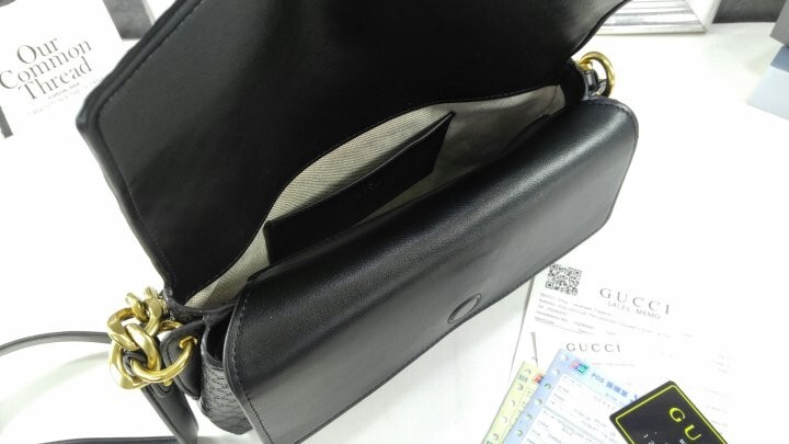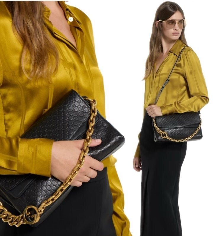 앤틱 골드 톤 체인의 라운드 인터로킹 G 디테일로 더욱 고급스럽고 세련된 디자인을 완성하였으며
