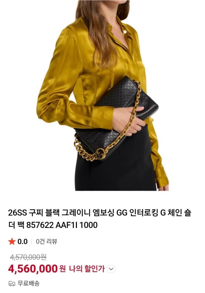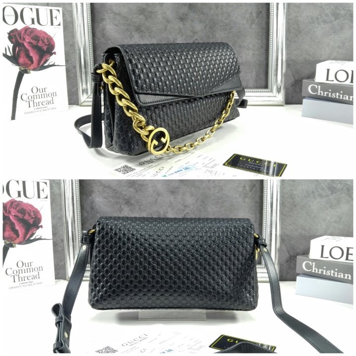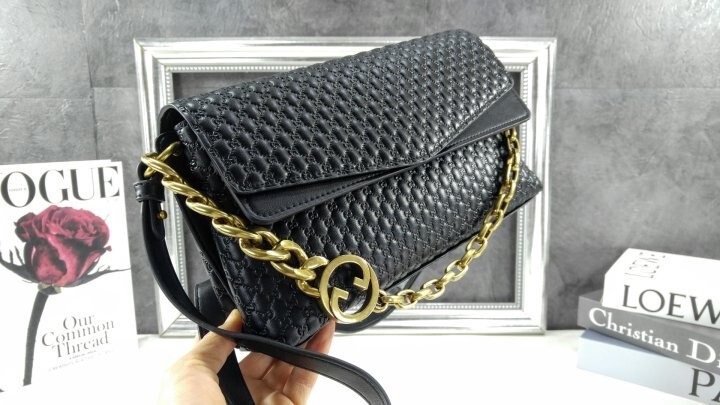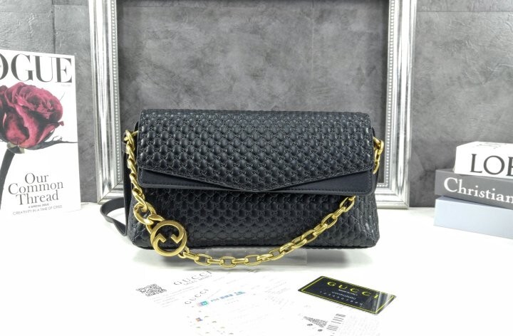 #GC 26SS 블랙 그레이니 엠보싱 GG 인터로킹 G 체인 숄더 백
