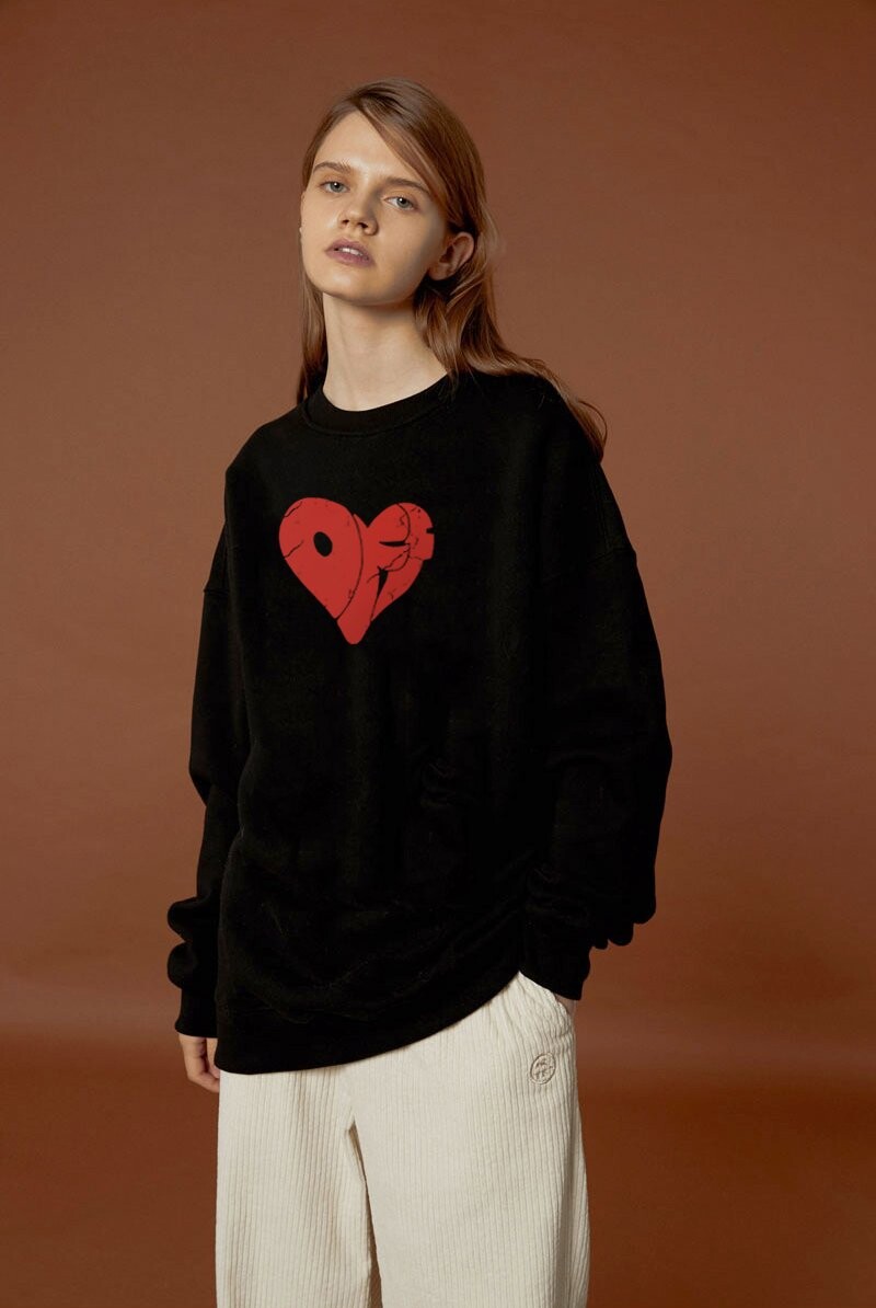 #OF 빈티지 하트 타이포 맨투맨