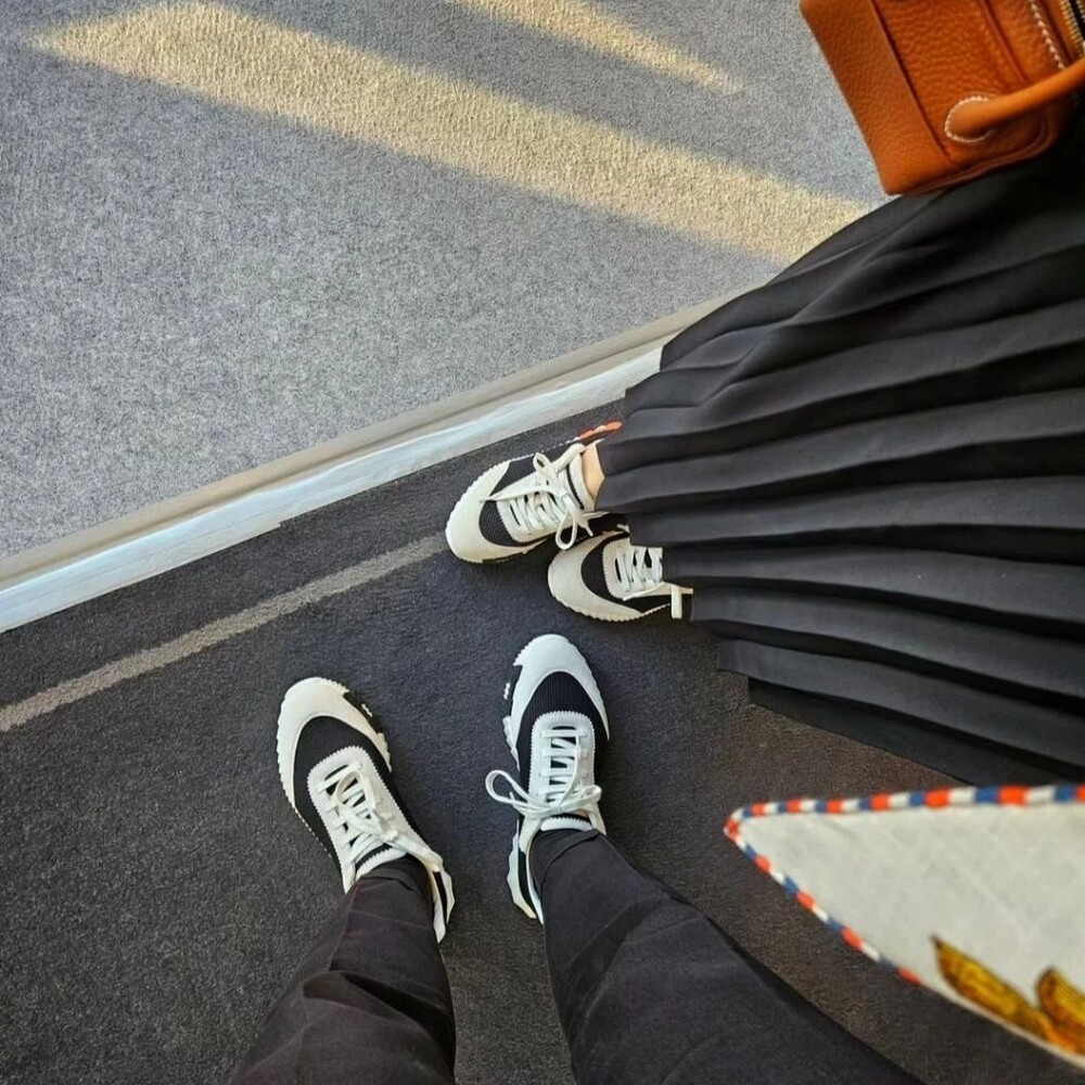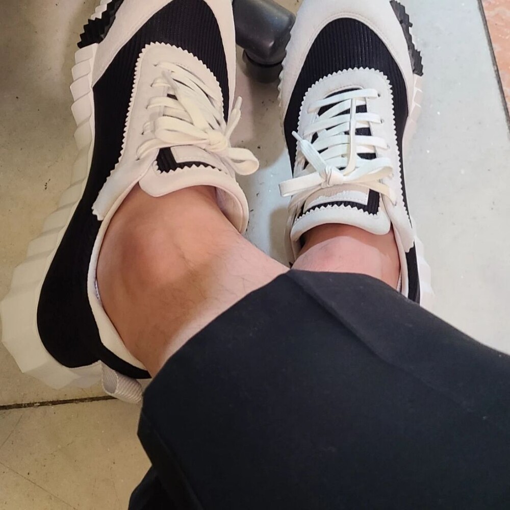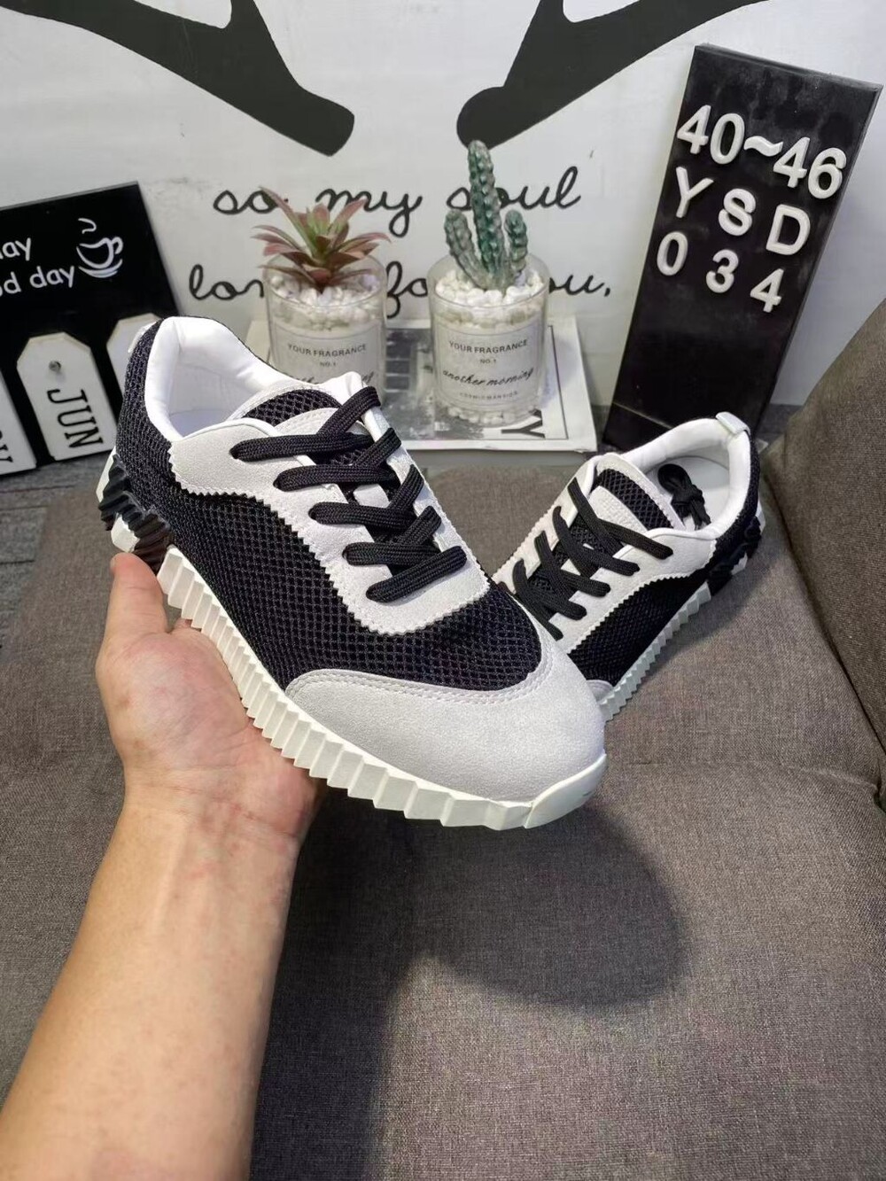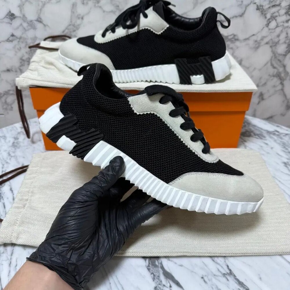 #HM 바운싱 스니커즈 메쉬 스웨이드 고트스킨 & 누아 블랑