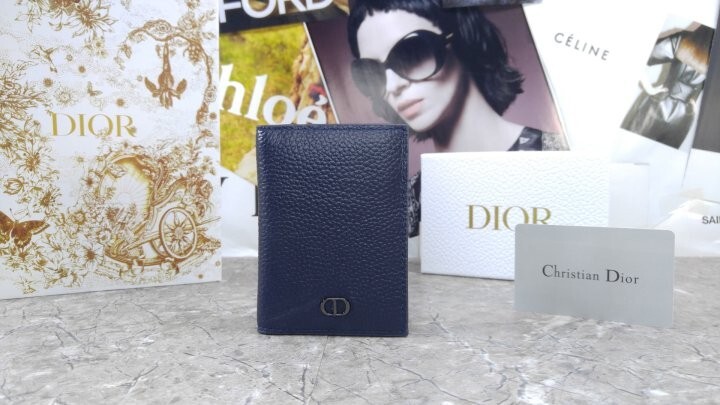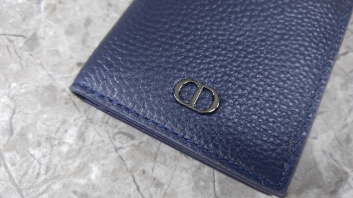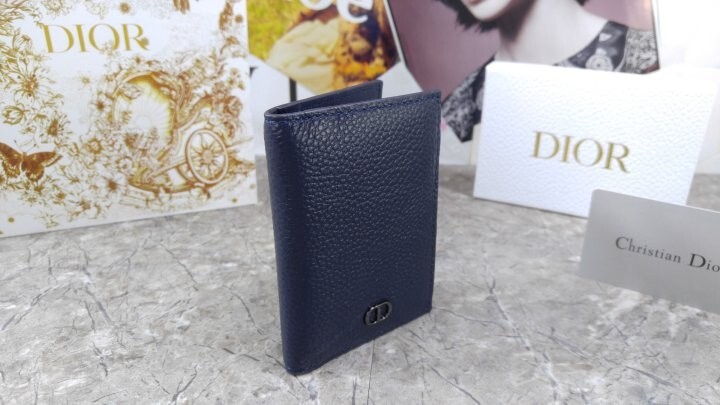기능성과 세련미를 겸비한 버티컬 2단 카드 지갑입니다. 네이비 블루 컬러의 그레인 송아지 가죽 소재로 제작되었으며 앞면의 CD Icon 시그니처 장식이 돋보입니다. 양쪽에 3개씩 마련된 카드 슬롯과 영수증 수납용 슬립 포켓 2개가 특징입니다. 포켓에 손쉽게 휴대하기 좋은 우아한 카드 지갑입니다.