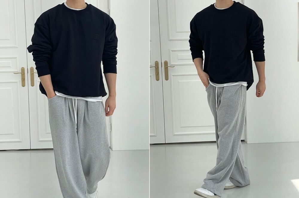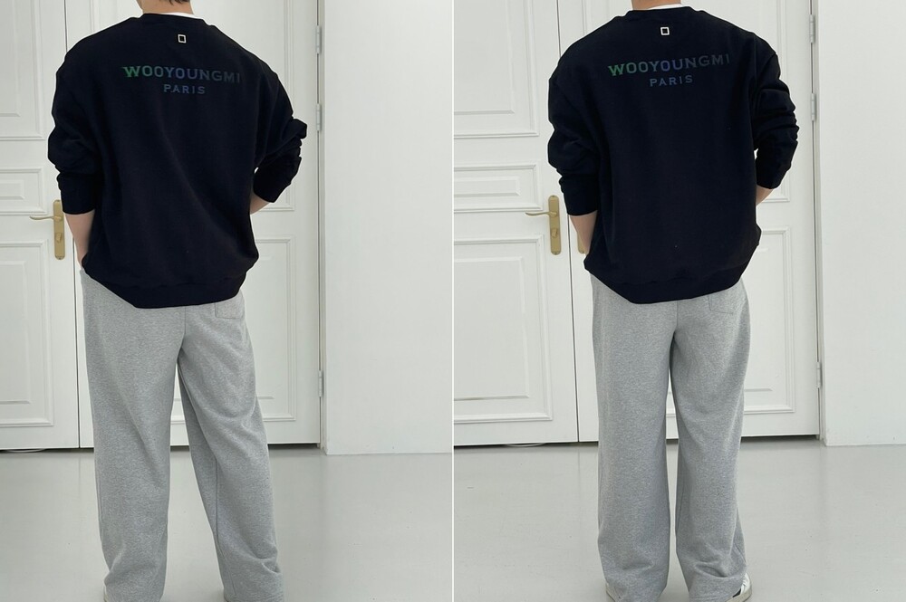 #YM 그라데이션 엠보싱 백로고 맨투맨(블랙)