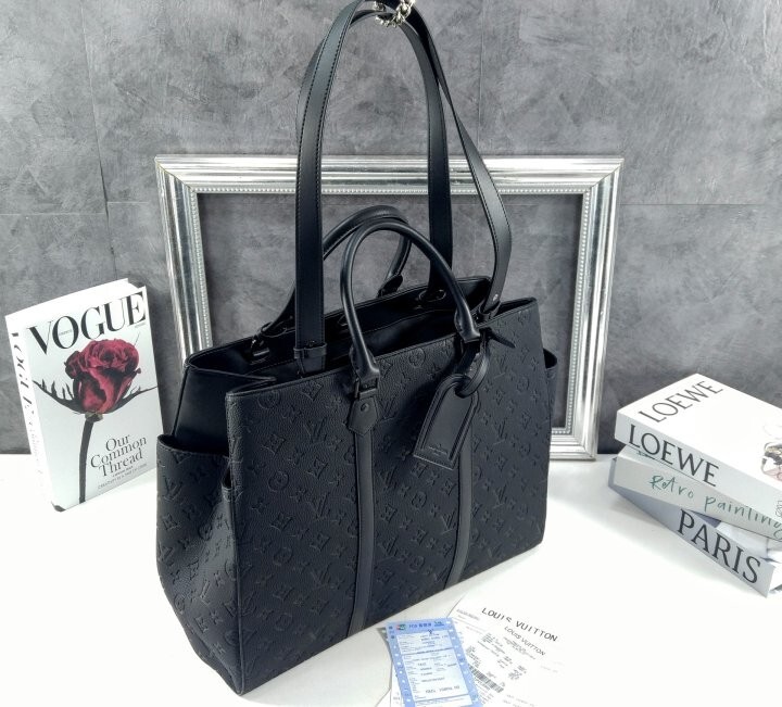 모노그램 이클립스 불박 캔버스 카우하이드 가죽 소재의 트리밍 텍스타일 소재의 안감 팔라듐 색상 하드웨어 후크 잠금장치 탈착형 네임 택 거싯 부분의 외부 플랫 포켓 2개 내부 지퍼형 포켓 내부의 더블 플랫 포켓 내부 플랫 포켓