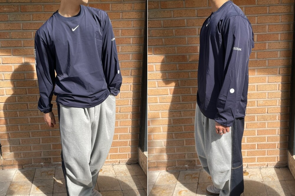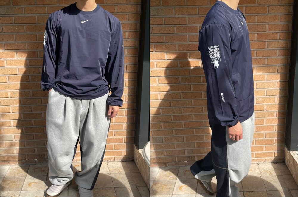 NK 드레이크의 콜라보 녹타라인의 크루넥 탑 네이비입니다.