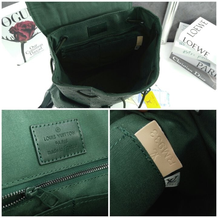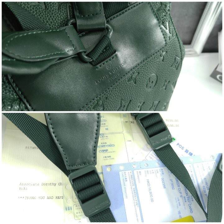 짙은 그린 색상으로 염색한 유연하면서도 내구성이 뛰어난 토뤼옹 카우하이드 가죽 소재.