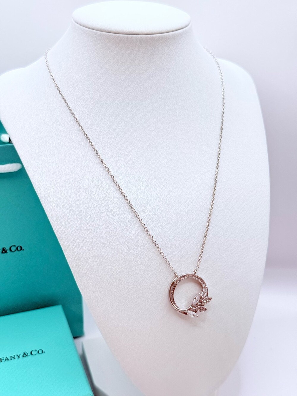 #TC 빅토리 플래티늄, 다이아몬드 세팅, 바인 서클 펜던트 목걸이