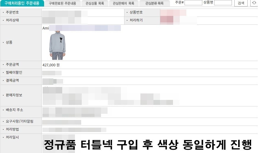 -앞부분 밑단,팔부분 시보리 정과 동일