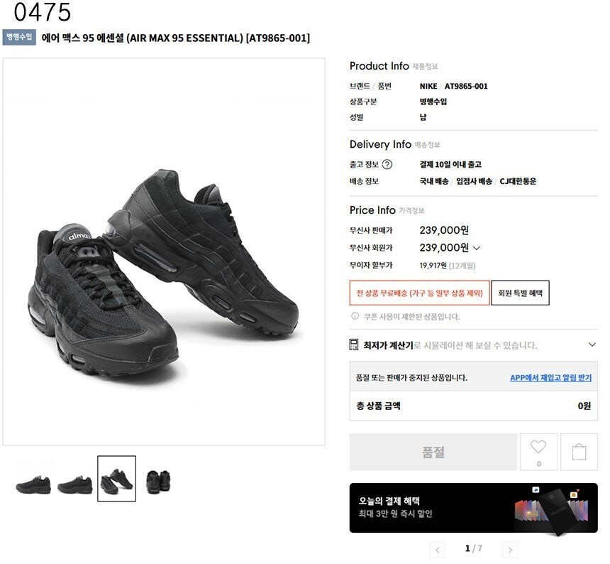 [225-240] NK 에어맥스 95 트리플 에센셜 av