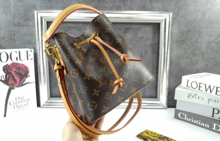 천연 가죽 소재의 트리밍을 더한 모노그램 캔버스 소재의 네오노에 BB. 하우스의 아이코닉한 네오노에 버킷 백을 작은 크기로 재해석한 디자인. 열쇠, 에어팟 및 아이폰 등 필수품을 휴대할 수 있는 넉넉한 수납공간. 소지품을 안전하게 보관 가능한 가죽 드로스트링. 탈착형 핸들과 탈착 및 조절 가능한 스트랩을 활용하여 다양하게 스타일링할 수 있는 아이템. 모노그램 코팅 캔버스 카우하이드 가죽 소재의 트리밍 마이크로화이버 안감 골드 색상 하드웨어 드로스트링 잠금장치