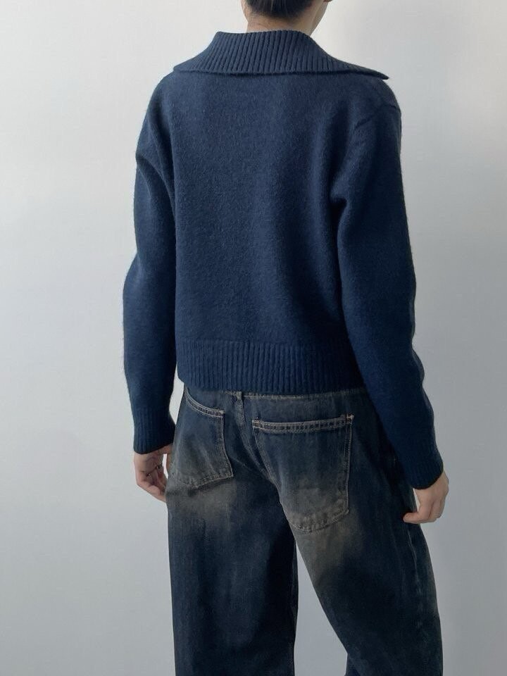 - 시그니처 로고가 새겨진 기본 집업 니트 입니다.