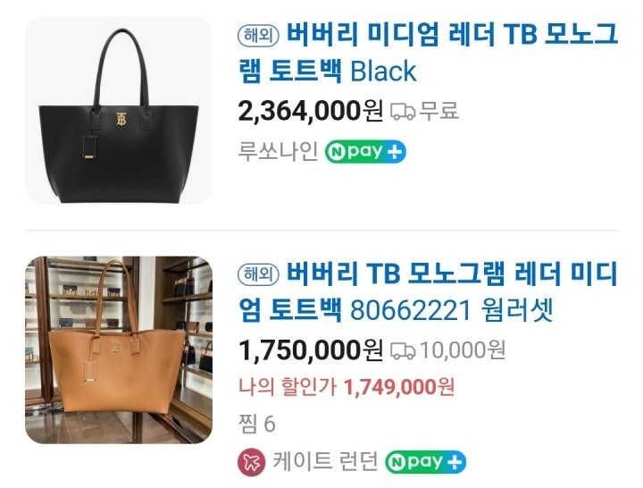 BB 블랙 '모노그램 미디엄' 쇼퍼백.