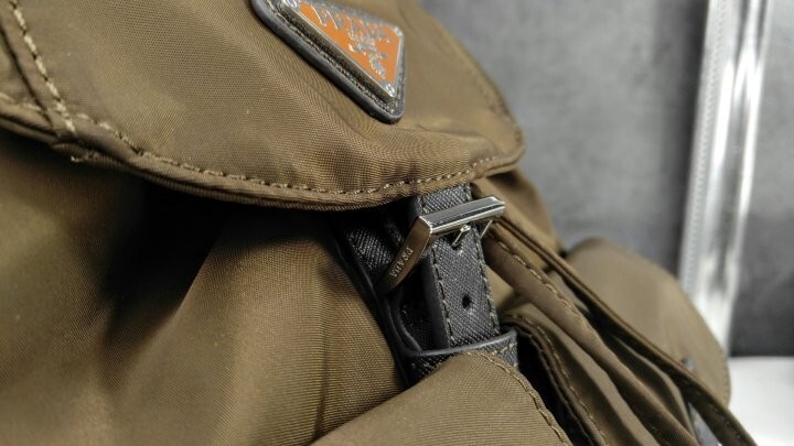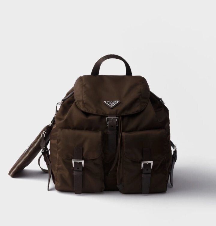 리나일론으로 제작된 가벼운 디컨스트럭티드 실루엣은 사피아노 가죽 디테일로 장식되었습니다.