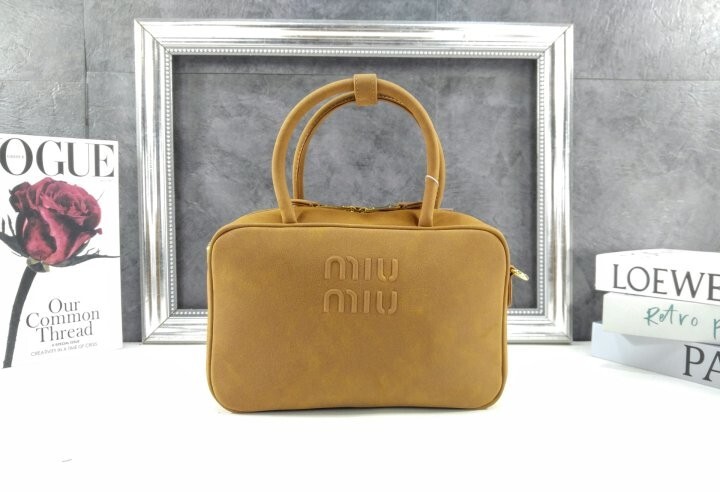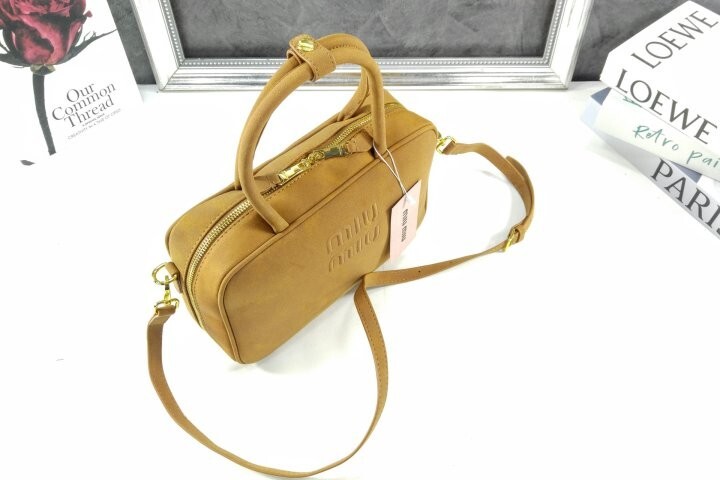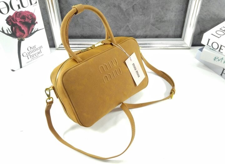 스웨이드 보 탑 핸들 백 미디엄 -탄