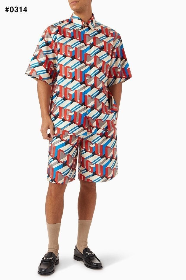 #GC 프린트 픽셀 실크 셔츠 쇼츠 세트 ai4
