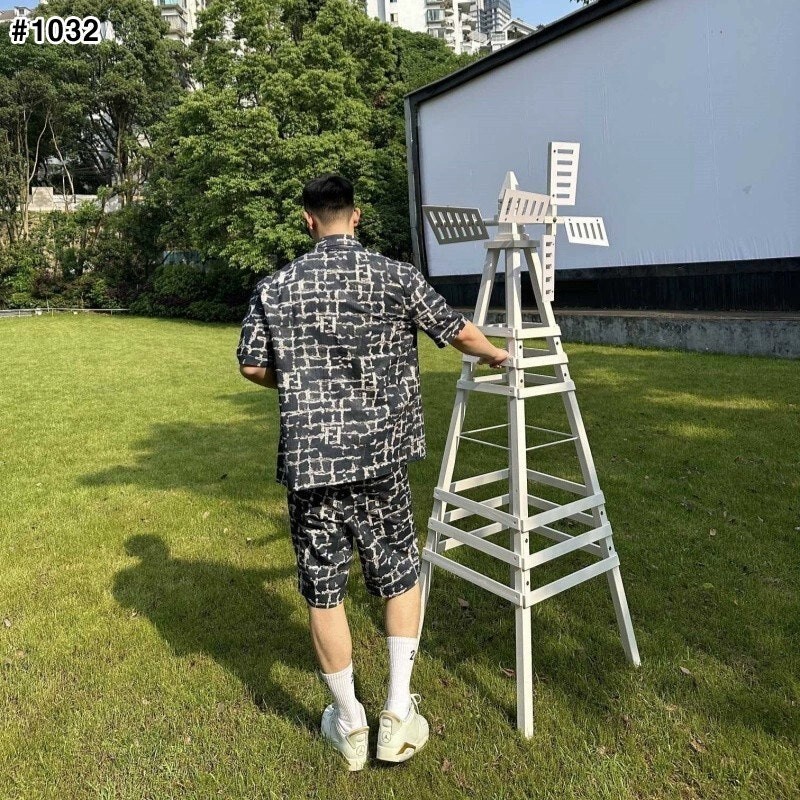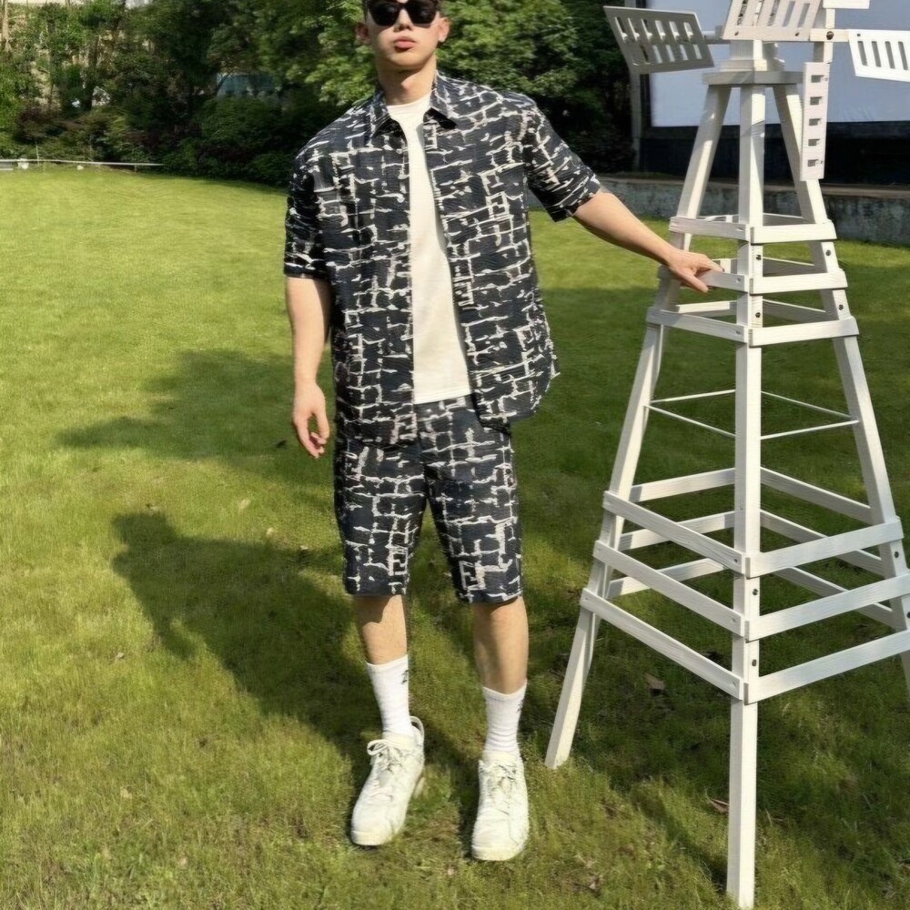 #FD 면 데님 FF 자카드 셔츠 & 하프 팬츠 셋