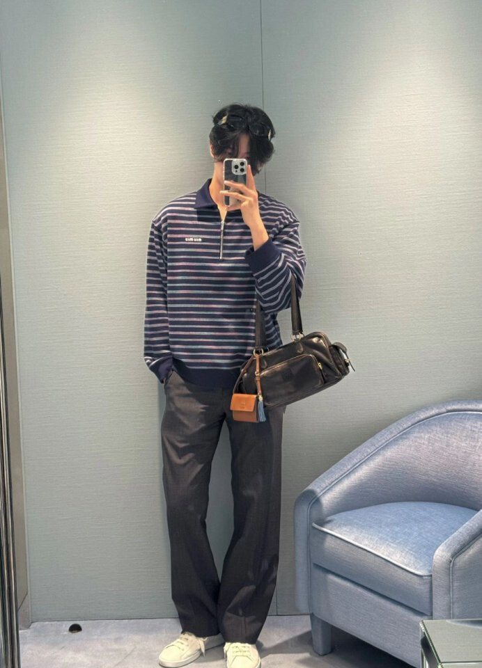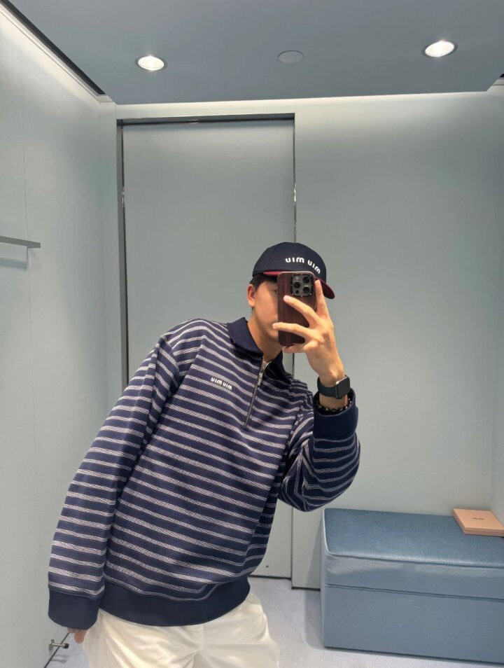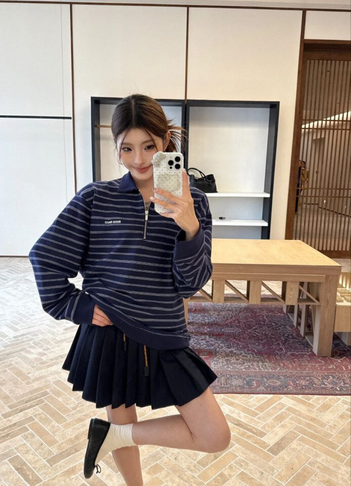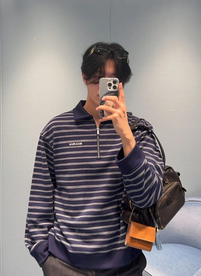 #MU 스트라이프 지퍼 카라 긴팔 zd