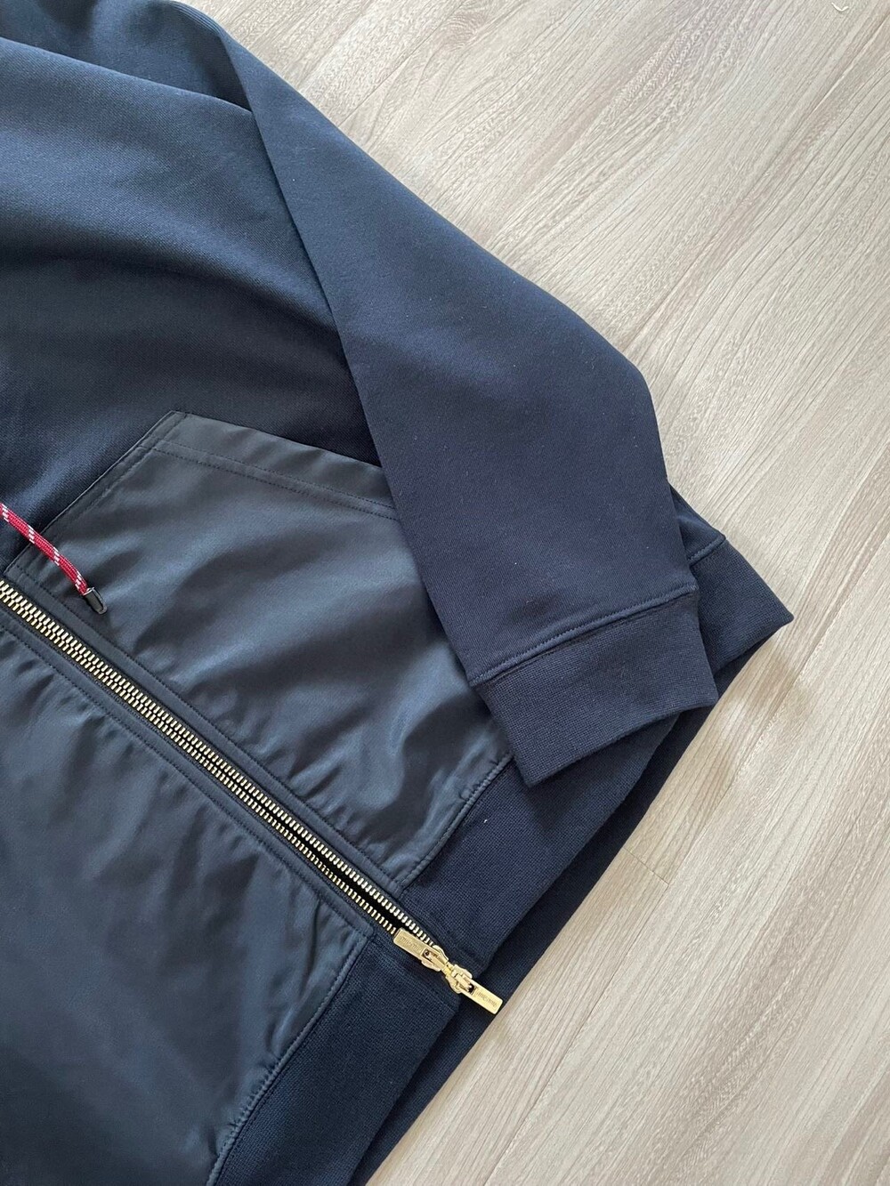 - 요즘 가장 핫한 브랜드인 MU 후드 제품으로 포켓과 후드부분과 전면 포켓부분 기능성 소재인 나일론이 돋보이는 상품입니다. 지퍼의 각인부터 암홀과 밑단 소매부분 특수봉재, 스트링 니트 밴드등 많은 디테일들이 실물로 보았을때 훨씬 고퀄리티 느낌입니다.