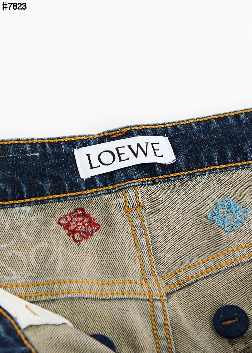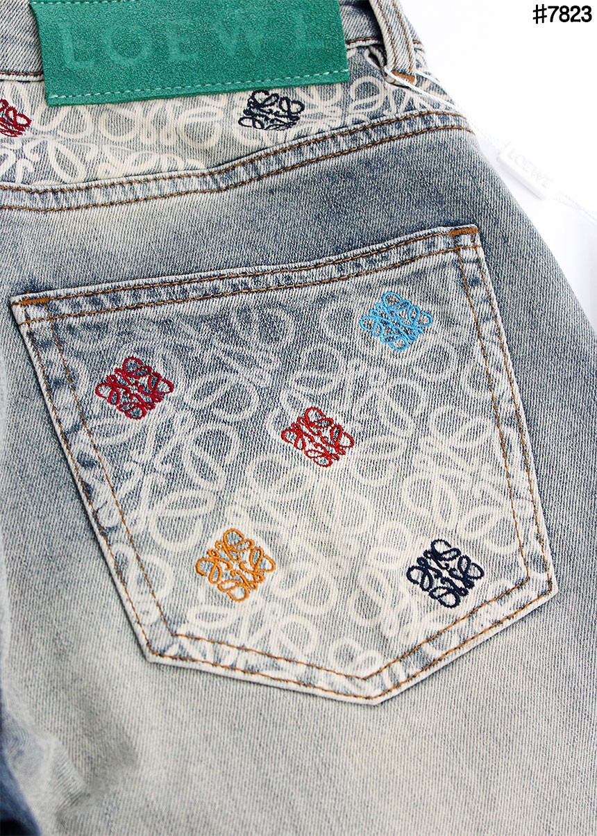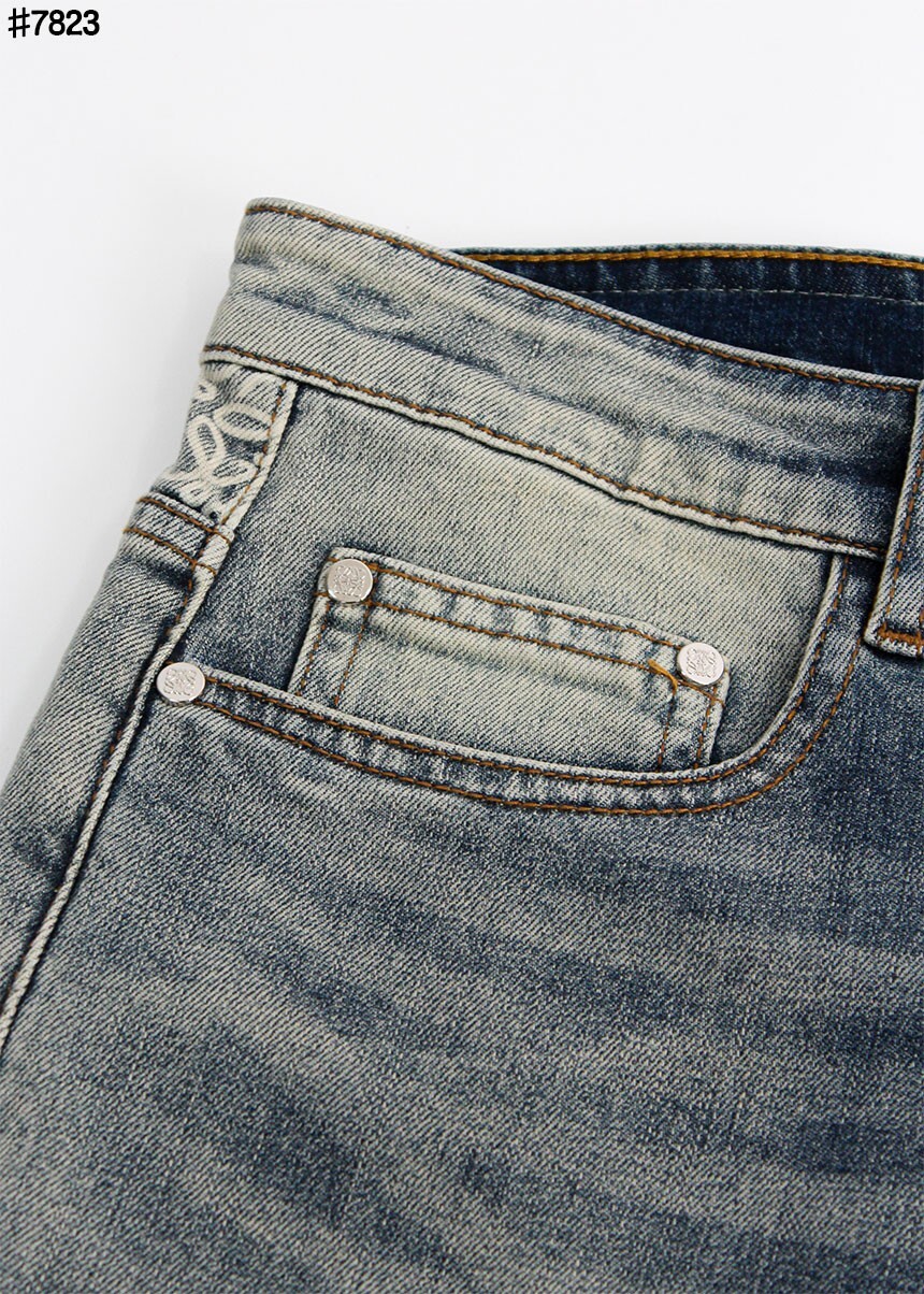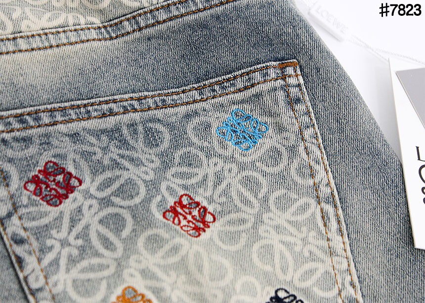#LW 벨벳 패치 아나그램 자수 로고 슬림핏 데님 팬츠