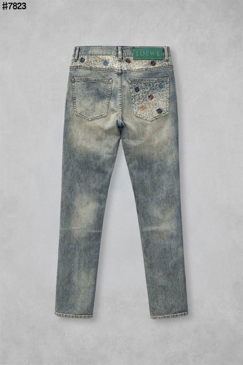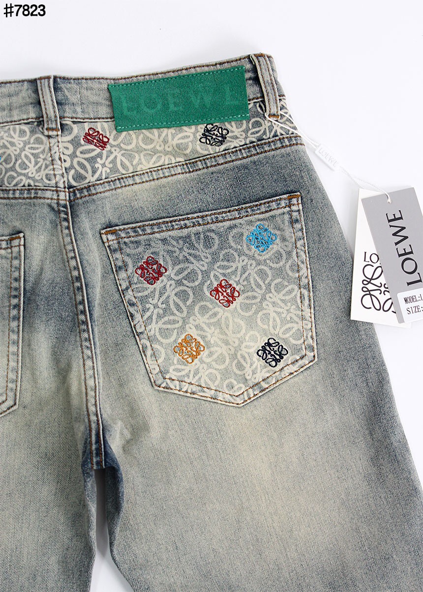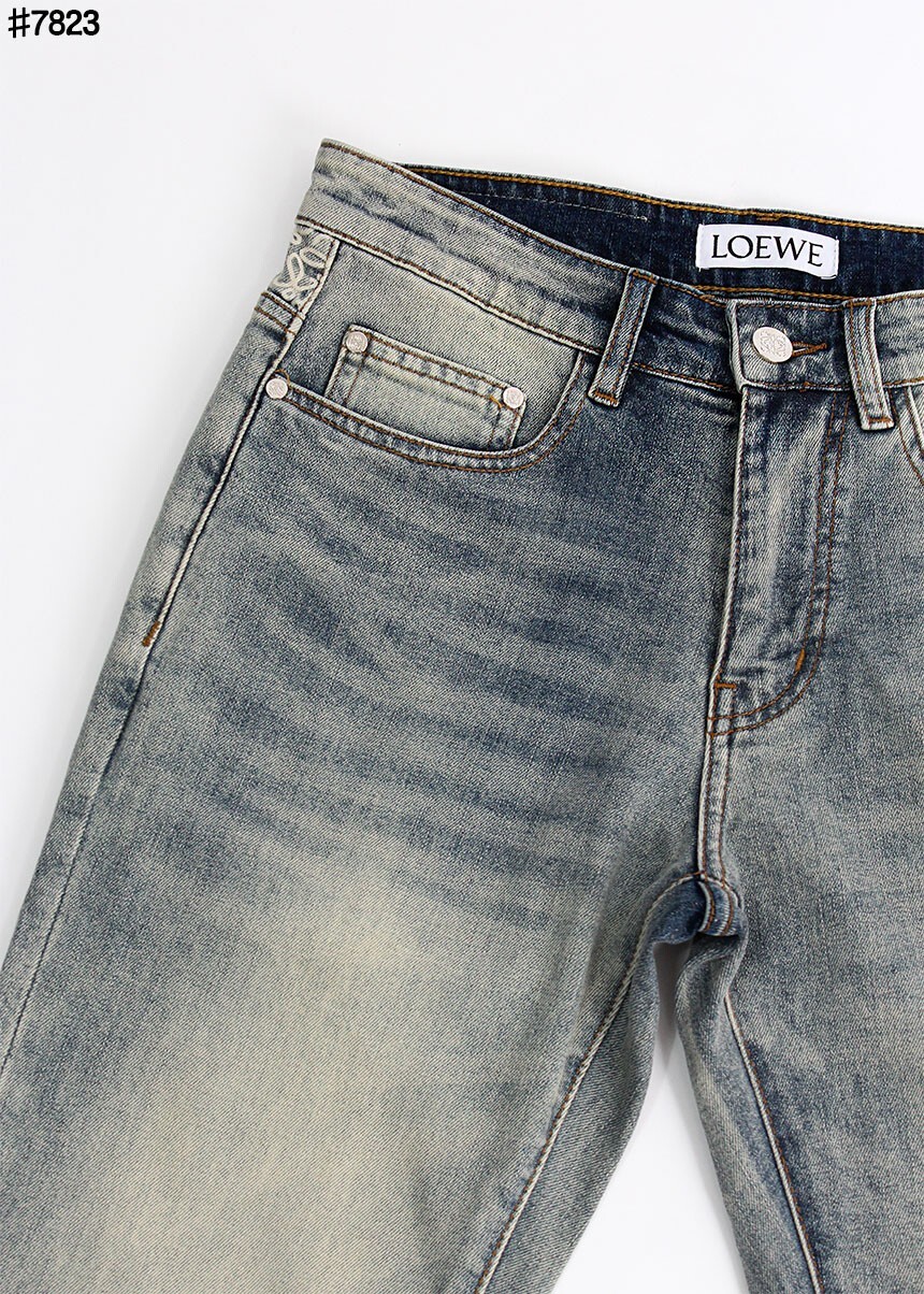 #LW 벨벳 패치 아나그램 자수 로고 슬림핏 데님 팬츠