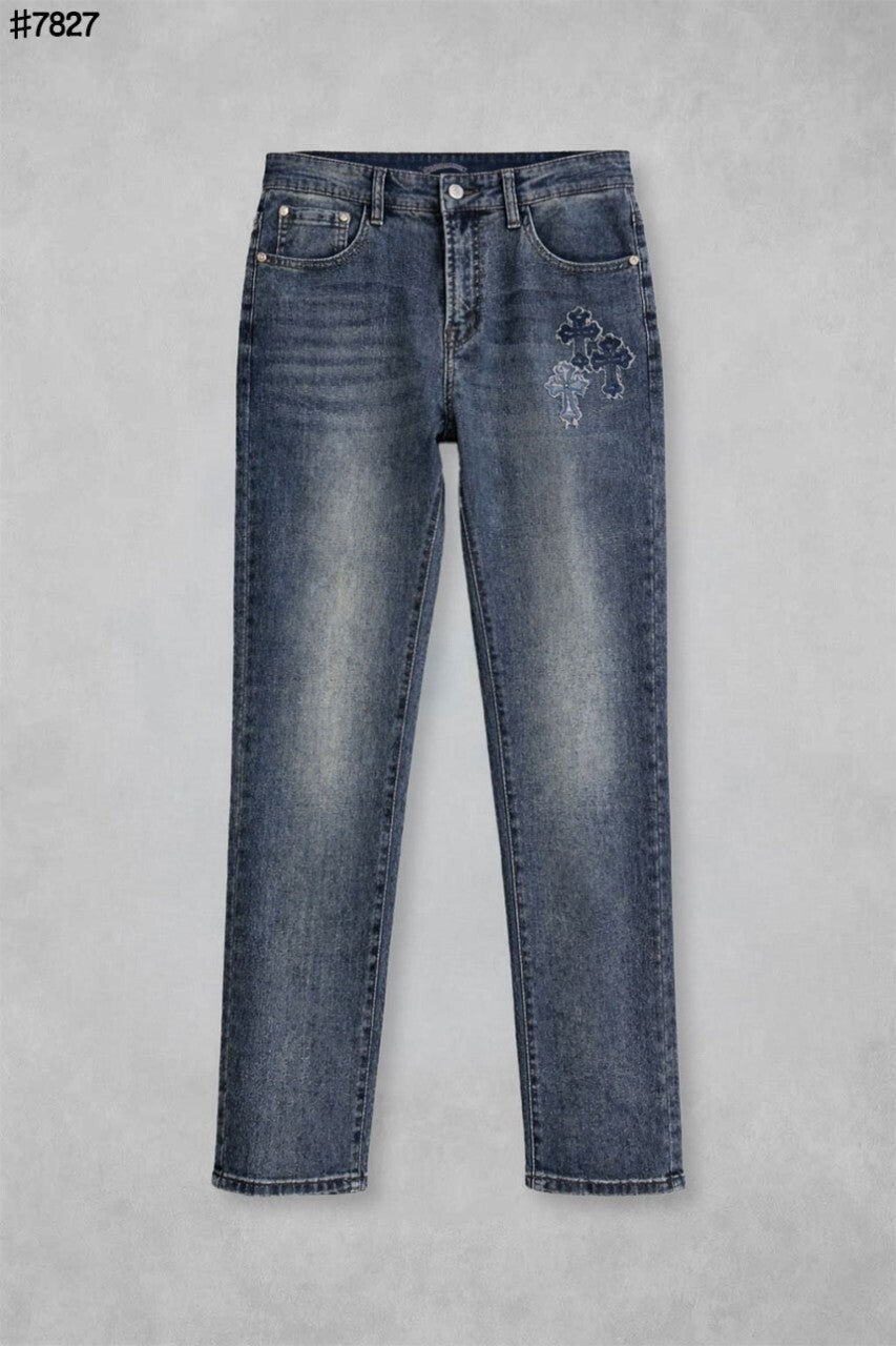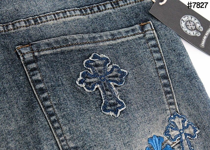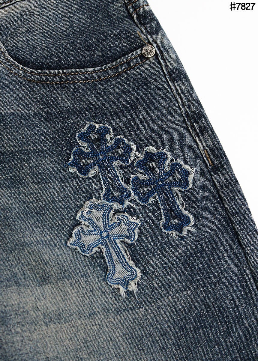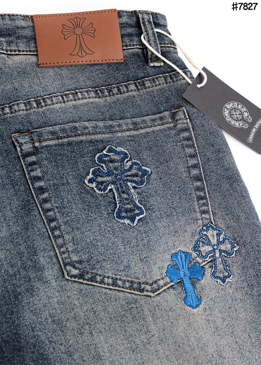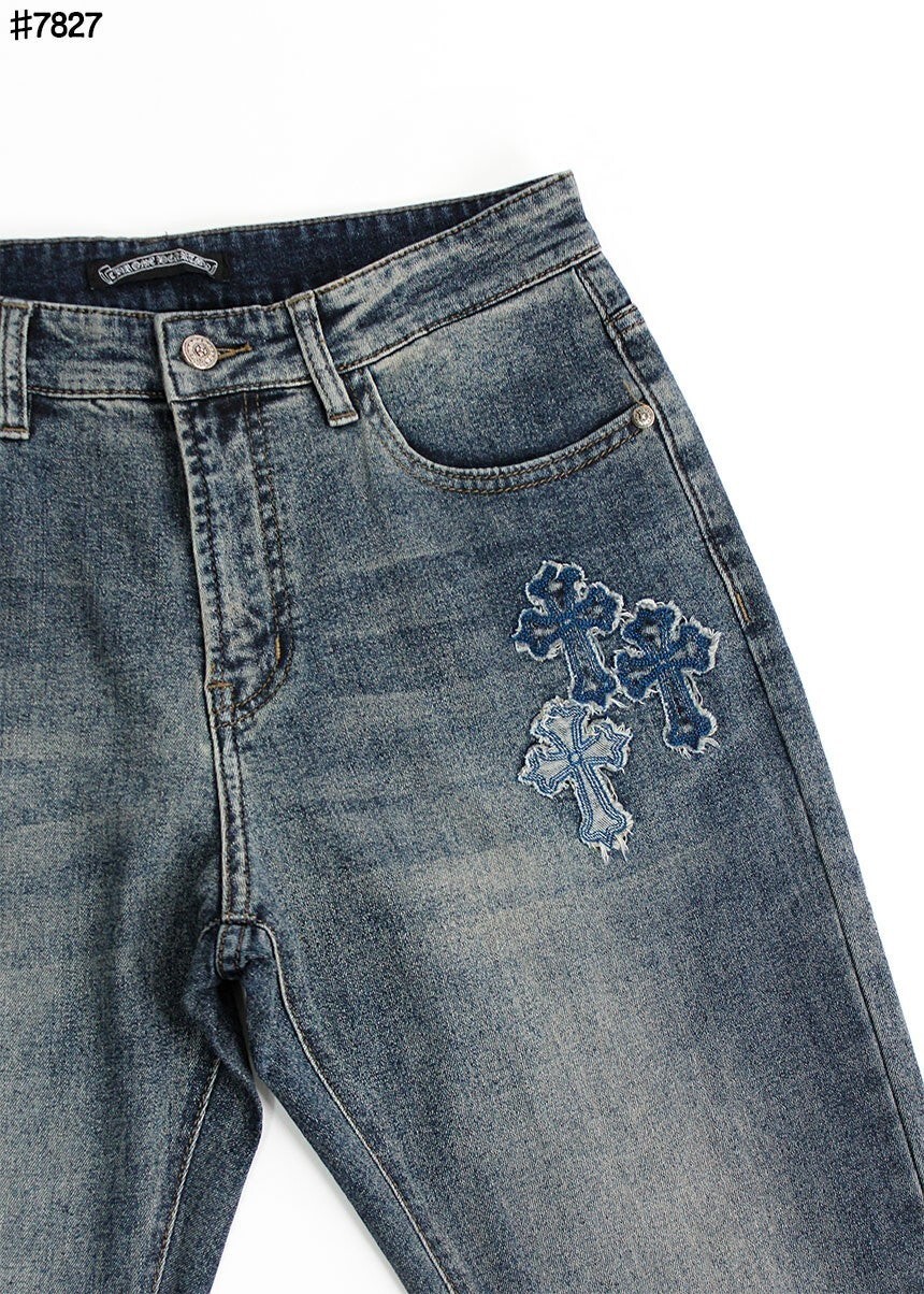 #CH 빈티지 세메터리 커스텀 패치 레귤러 핏 데님 팬츠