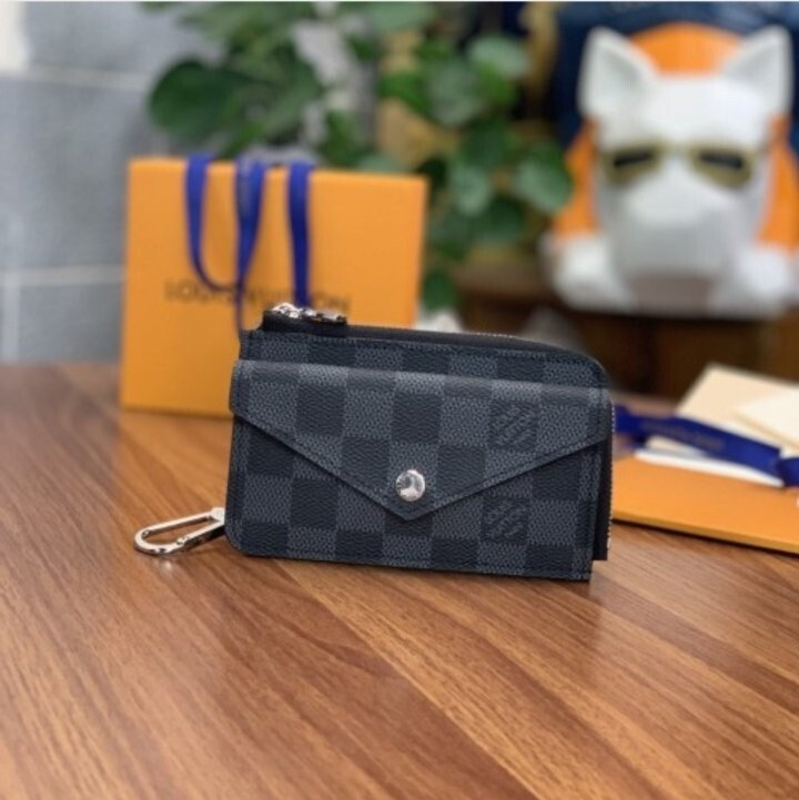 독창적인 다기능 디자인이 돋보이는 카드 홀더 렉토 베르소. 넓은 L 형태의 지퍼가 달린 동전 수납공간, 지폐를 접어서 보관할 수 있는 중앙 포켓, 엔벨로프 스타일의 앞면 포켓 및 세 개의 카드 슬롯으로 이루어진 실용적인 구조가 특징. 후크를 활용하여 백이나 벨트에 매달 수 있는 아이템.