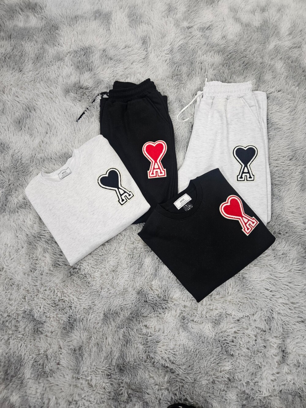 #AM 빅하트 맨투맨 와이드팬츠 세트 (2color) f