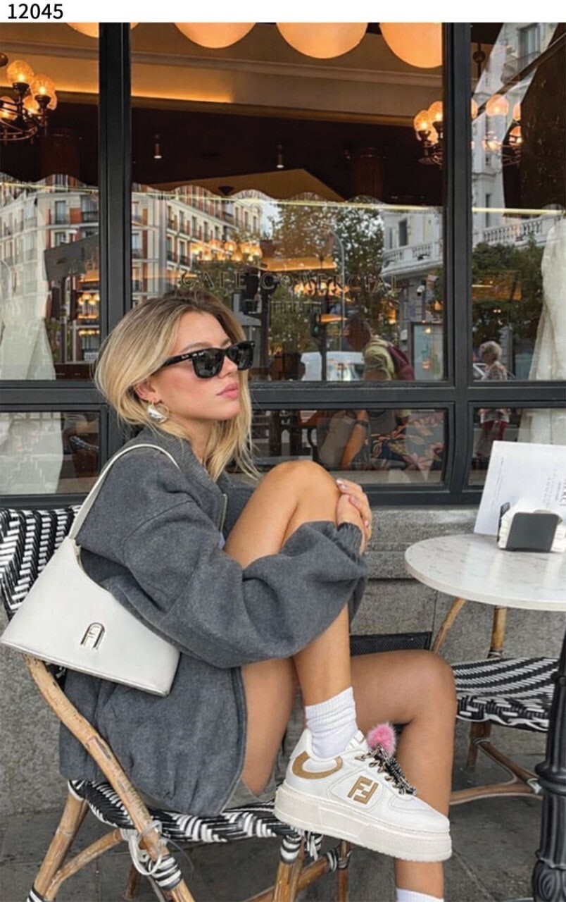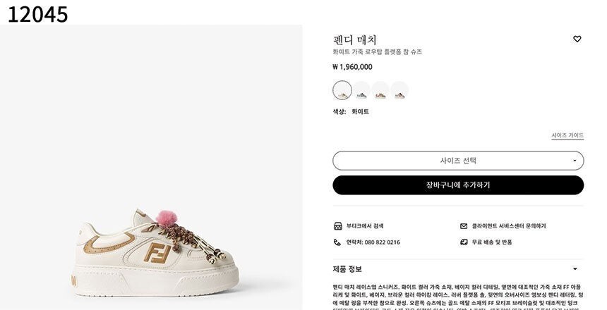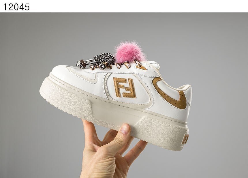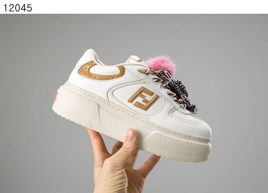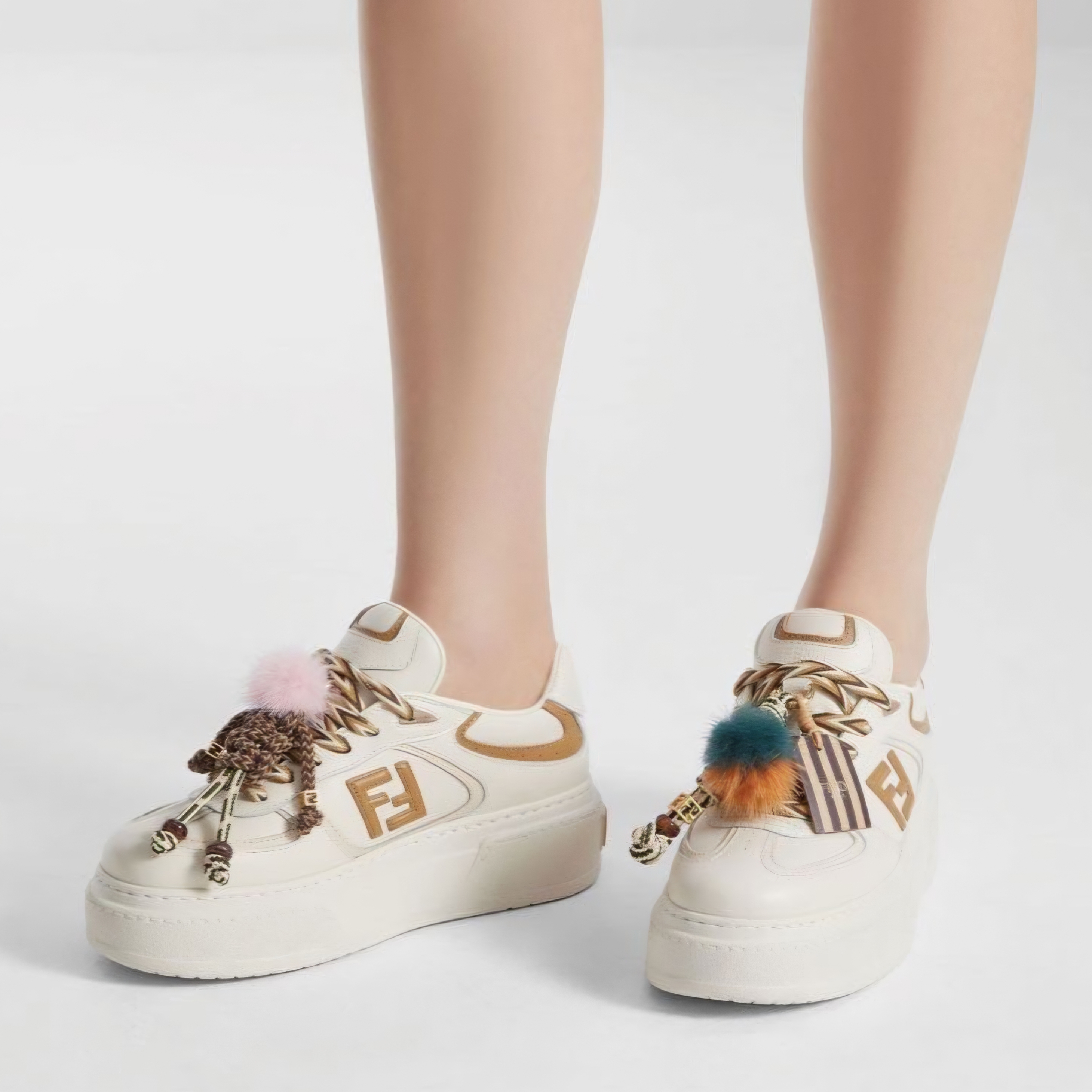 펜디 매치 화이트 가죽 로우탑 플랫폼 참 슈즈