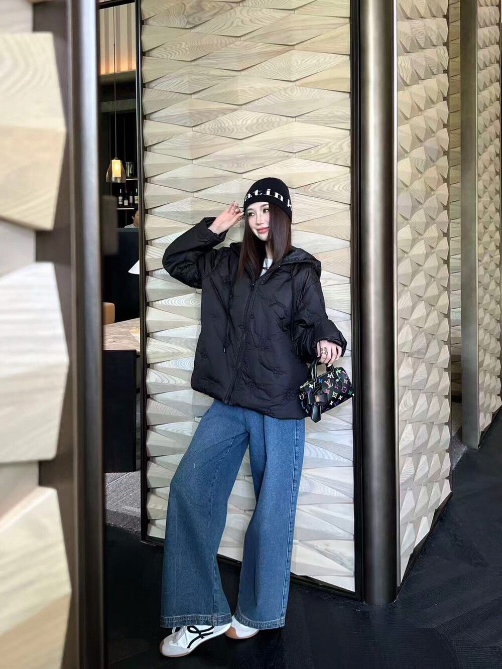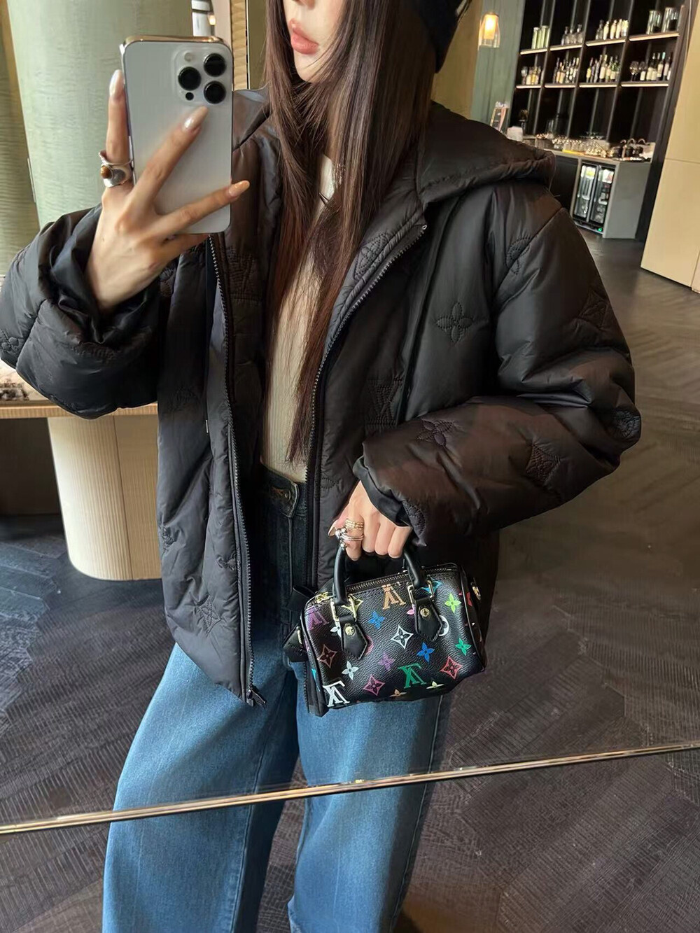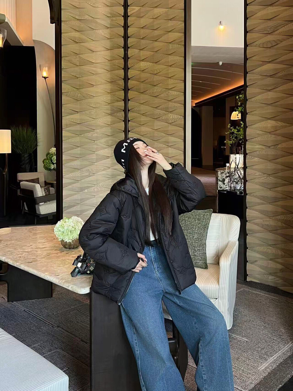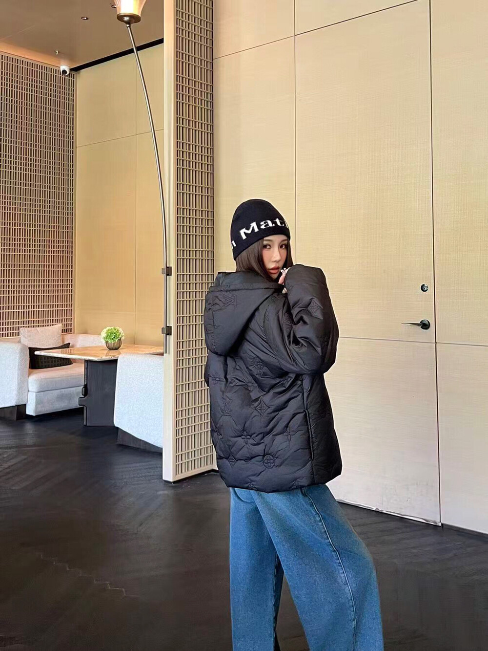 #LV 모노그램 자수 후드 패딩코트