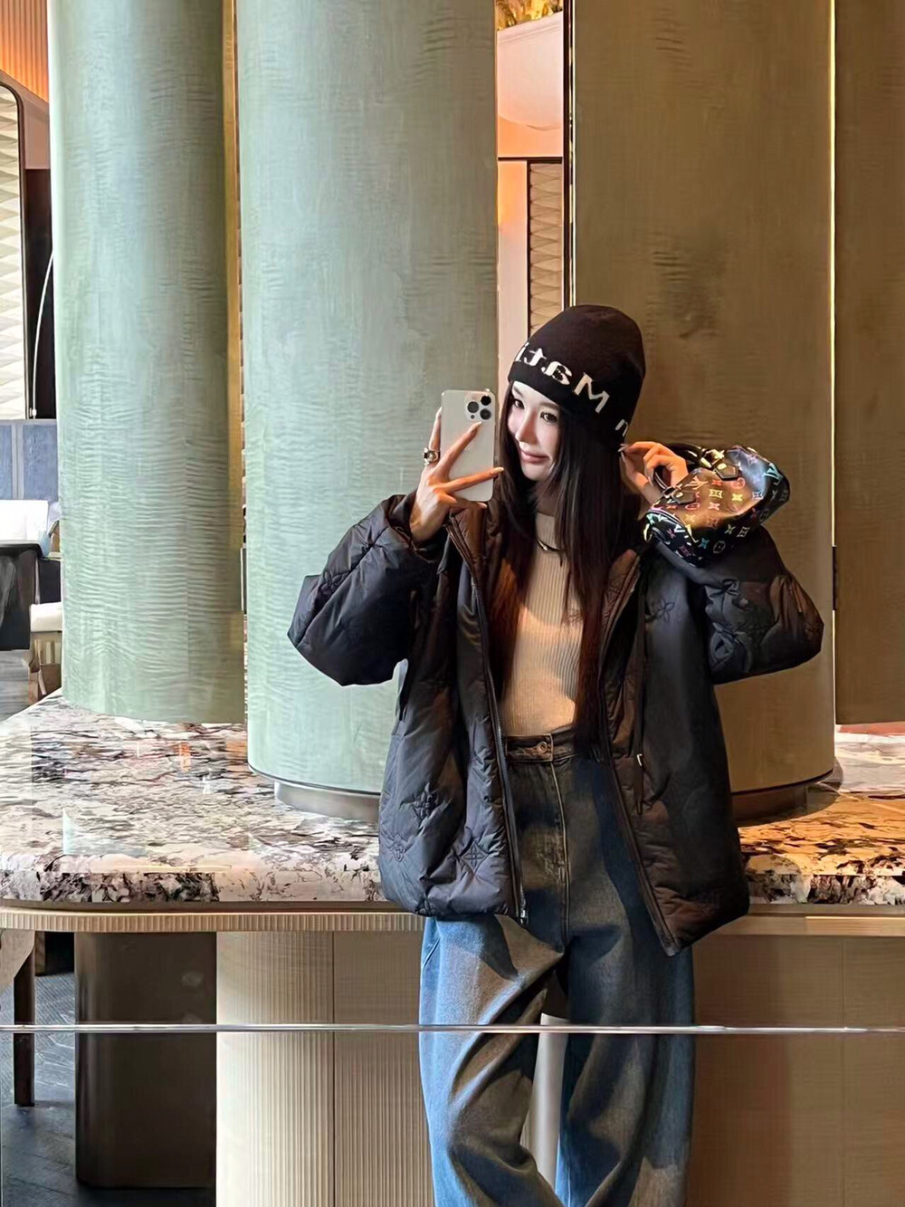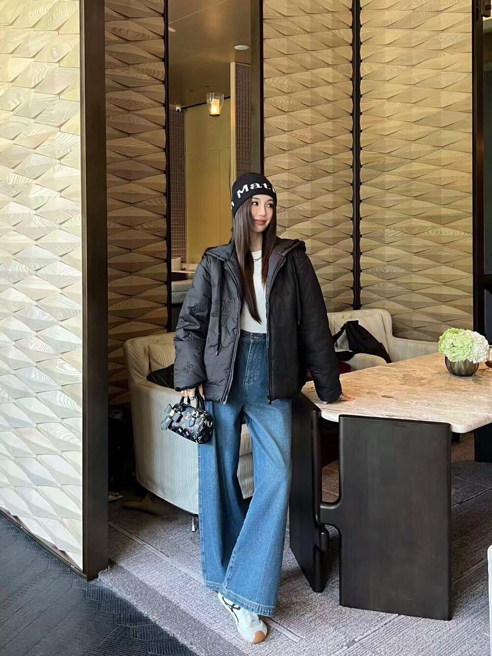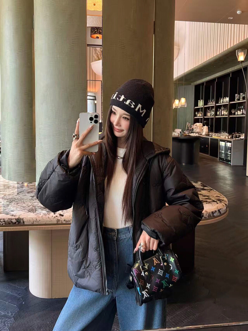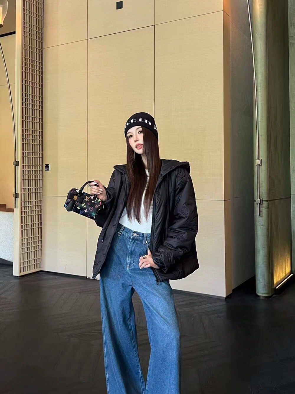 #LV 모노그램 자수 후드 패딩코트