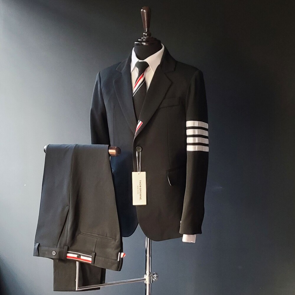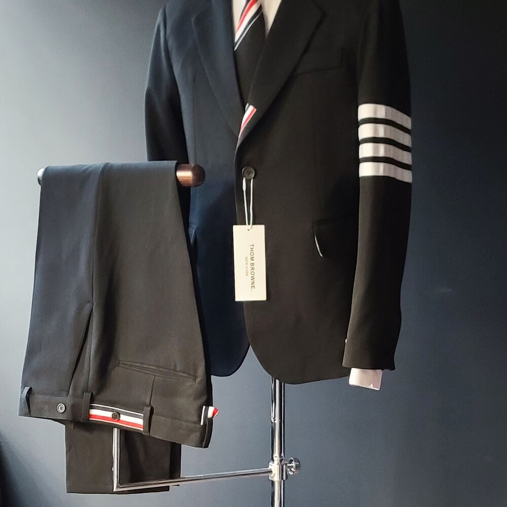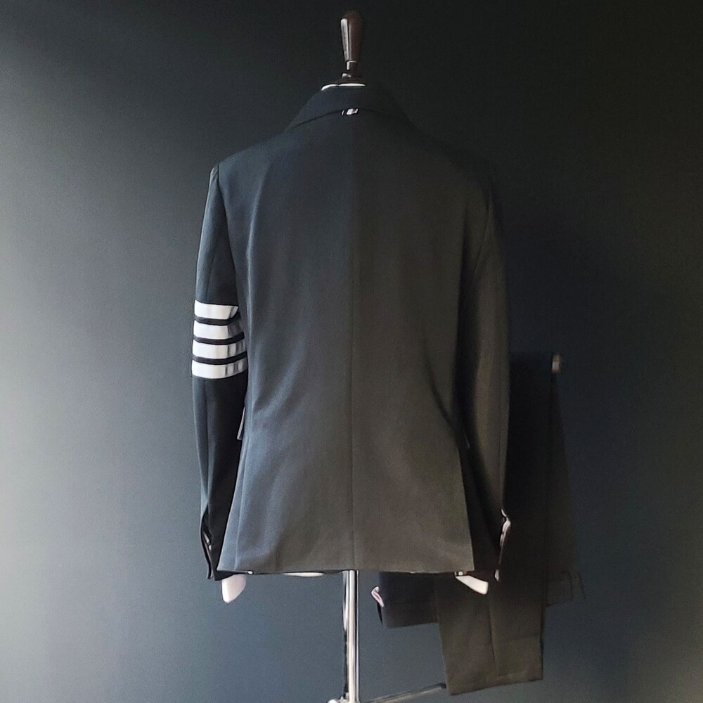 #GC 스트라이프 비스코스 더블 수트정장세트_네이비 h