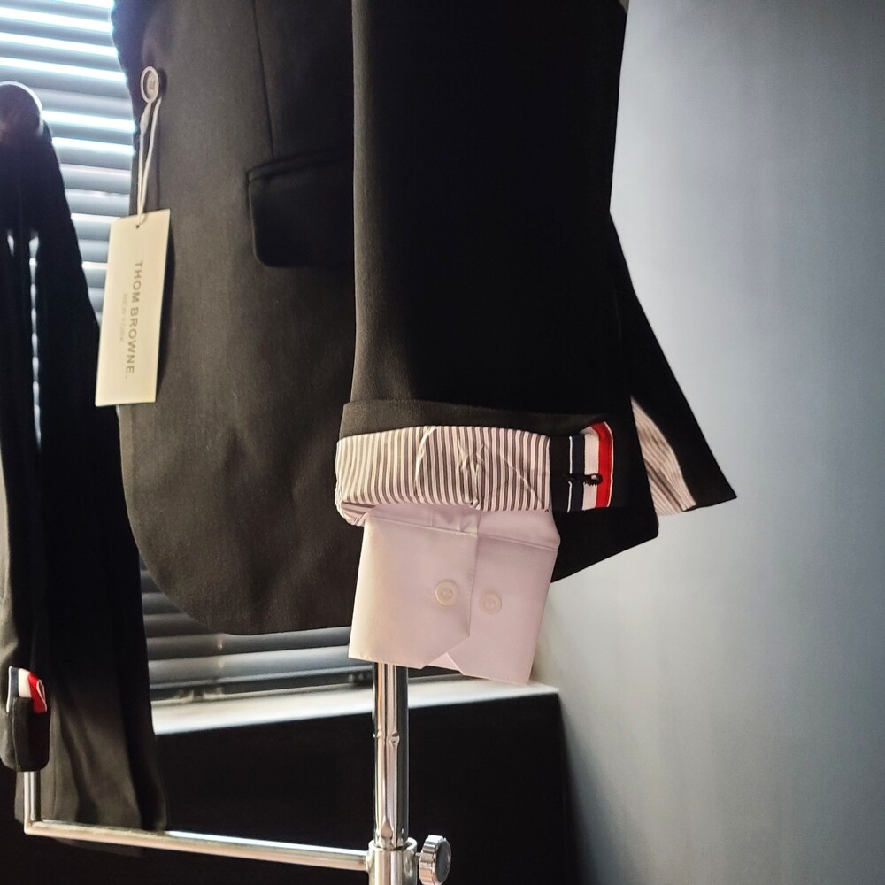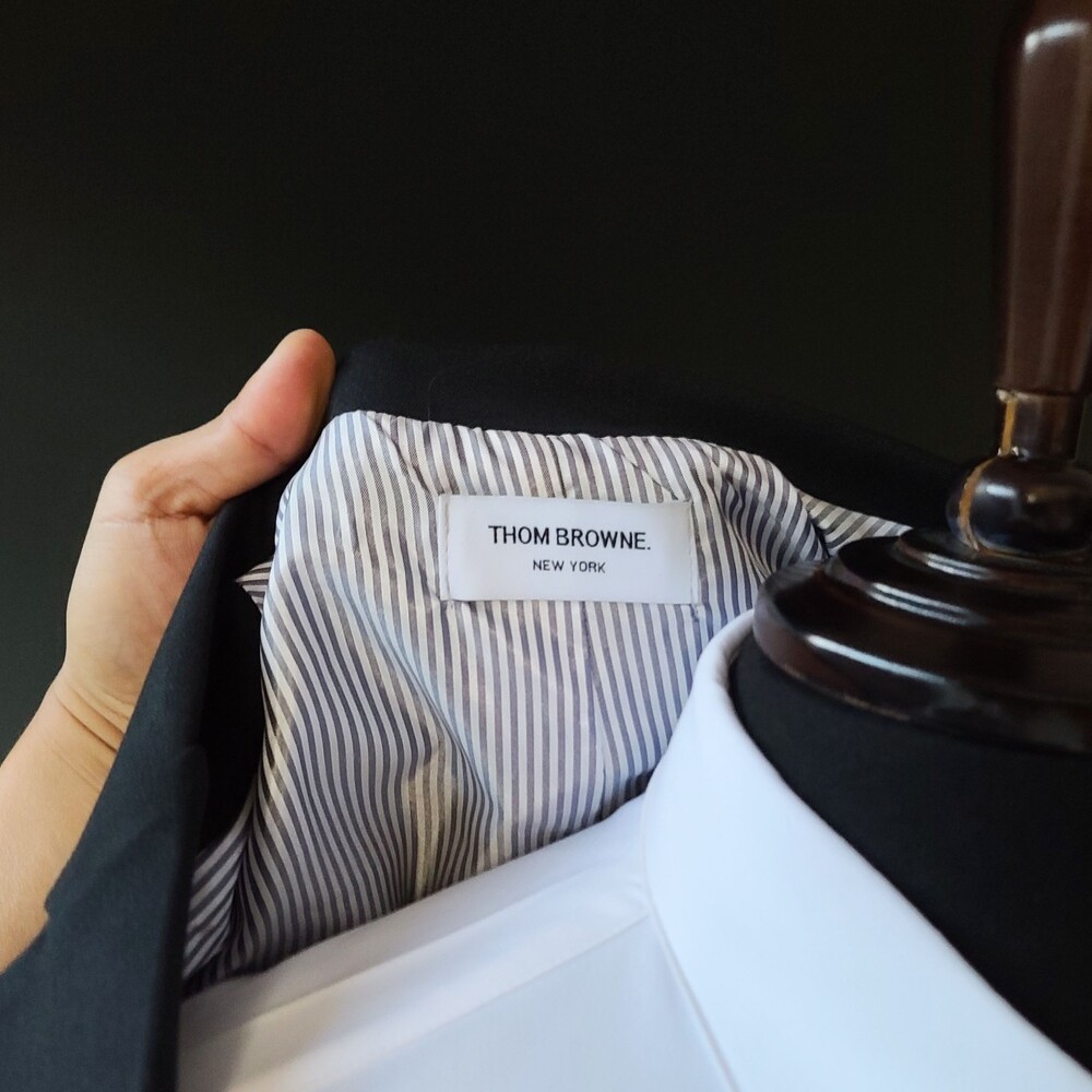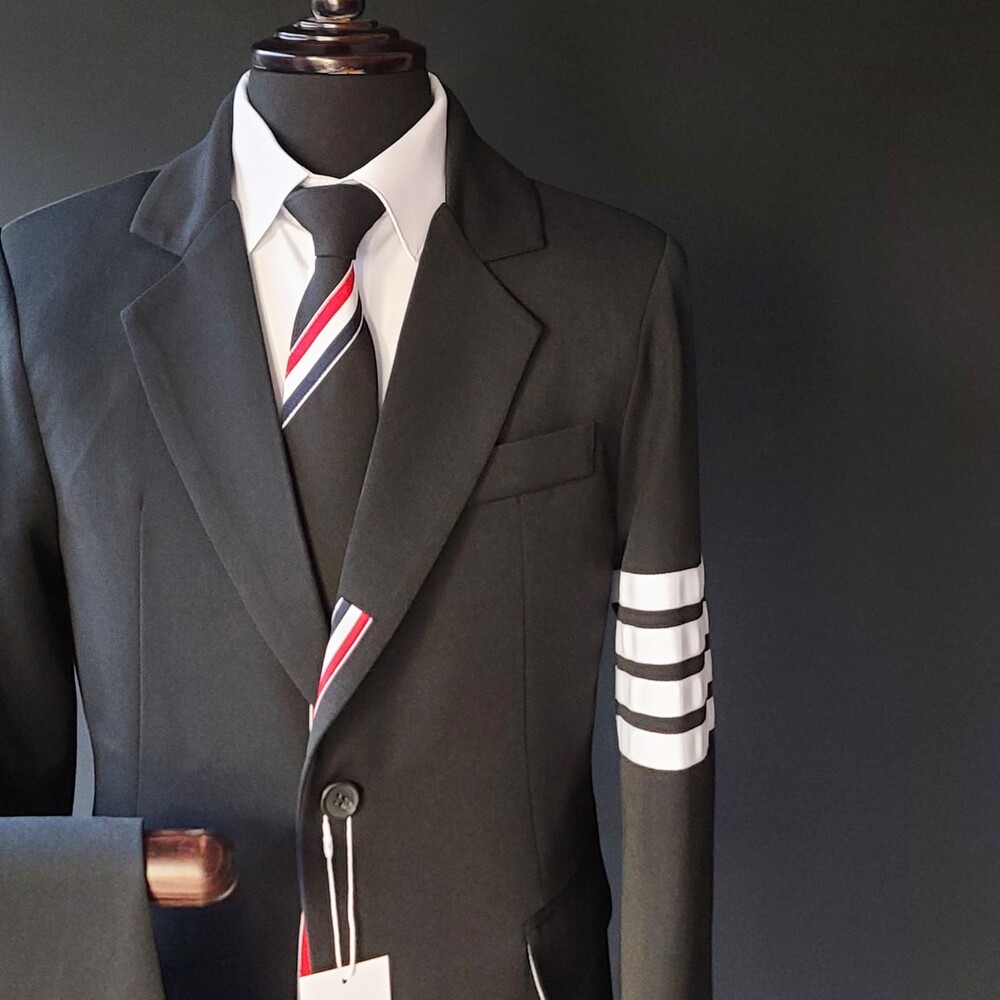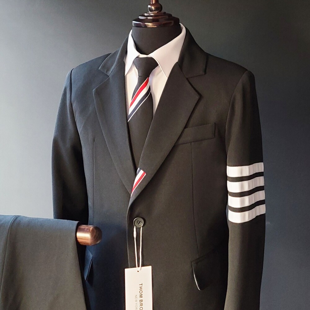 #GC 스트라이프 비스코스 더블 수트정장세트_네이비 h