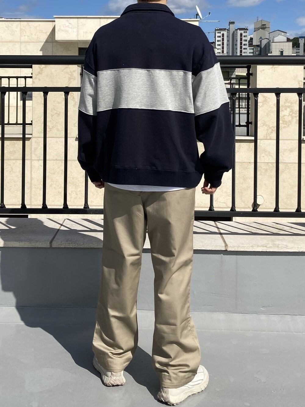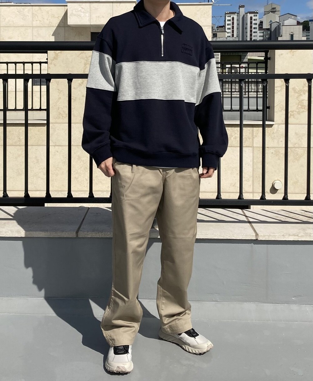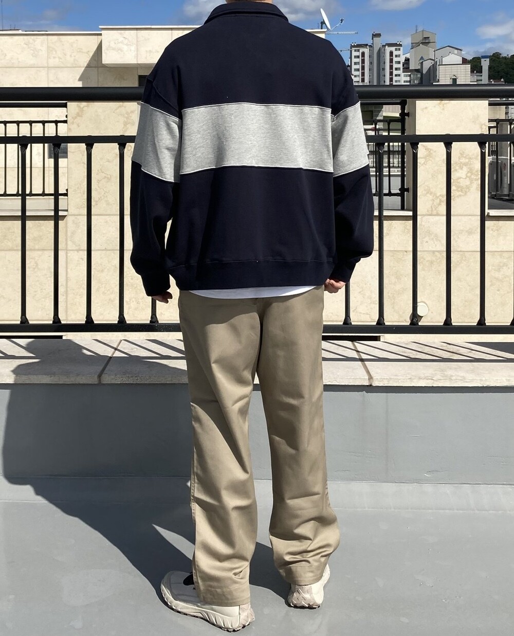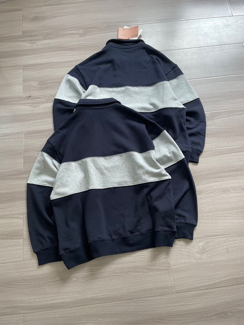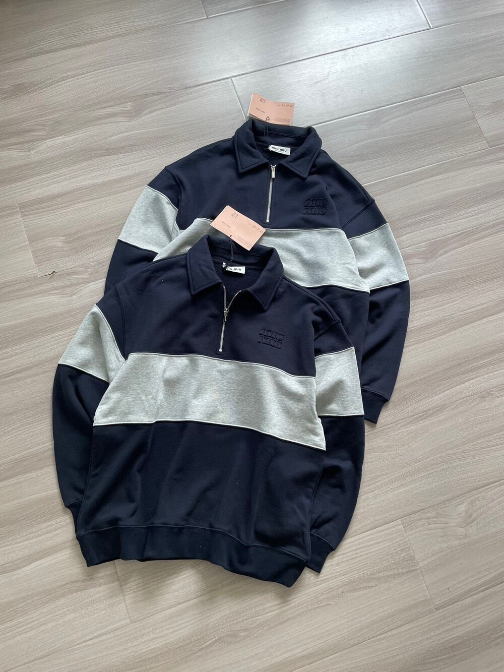 #MU 하프 집업 스트라이프 스웨트셔츠