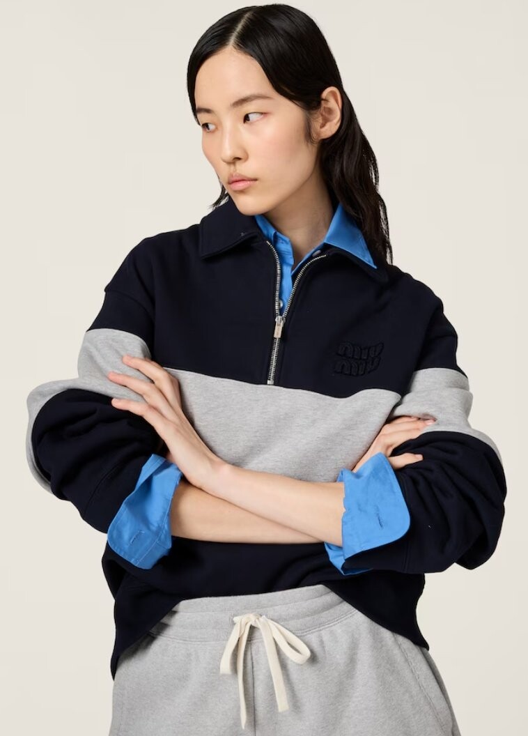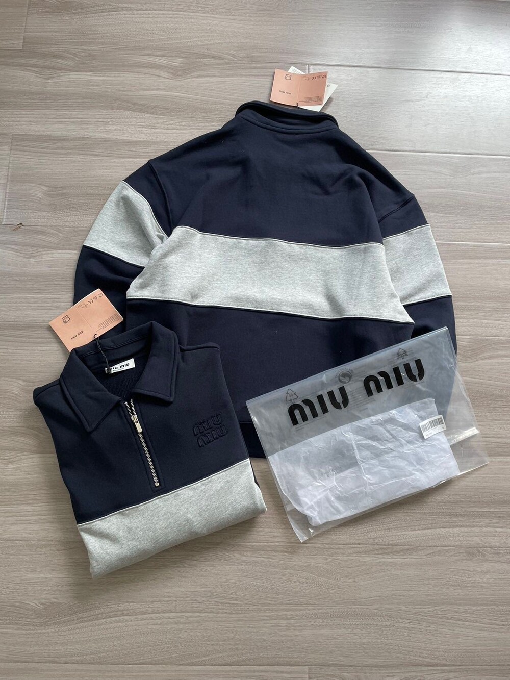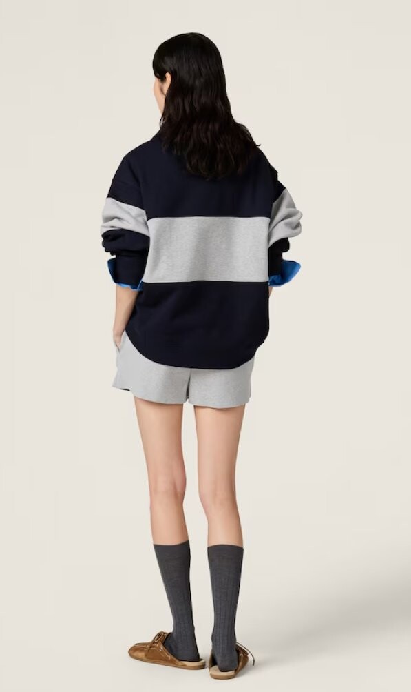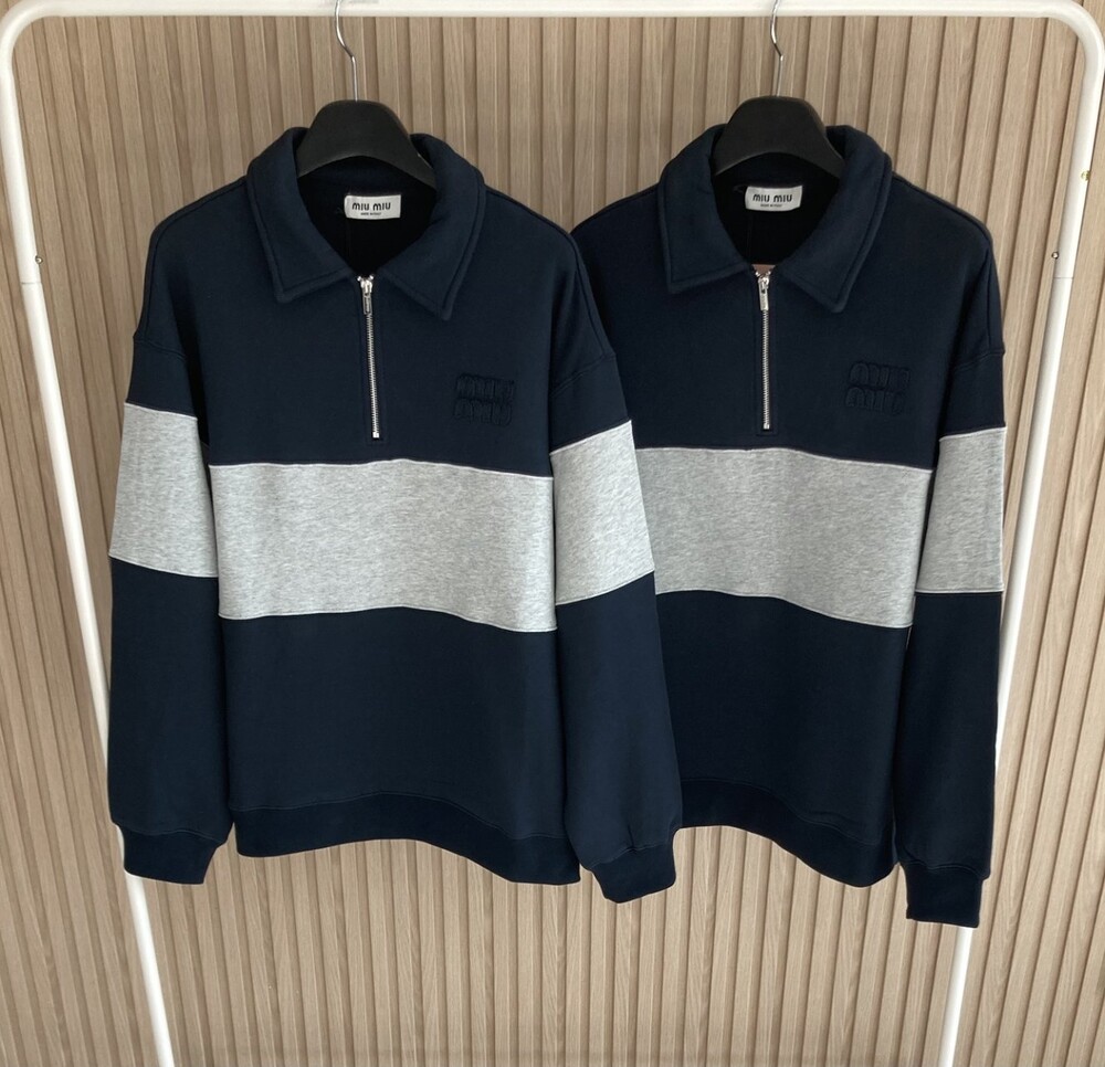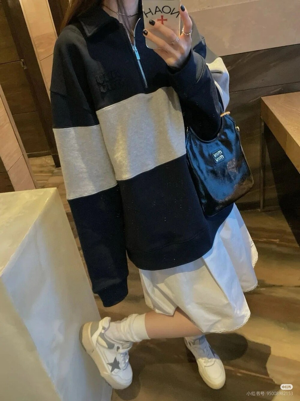 #MU 하프 집업 스트라이프 스웨트셔츠