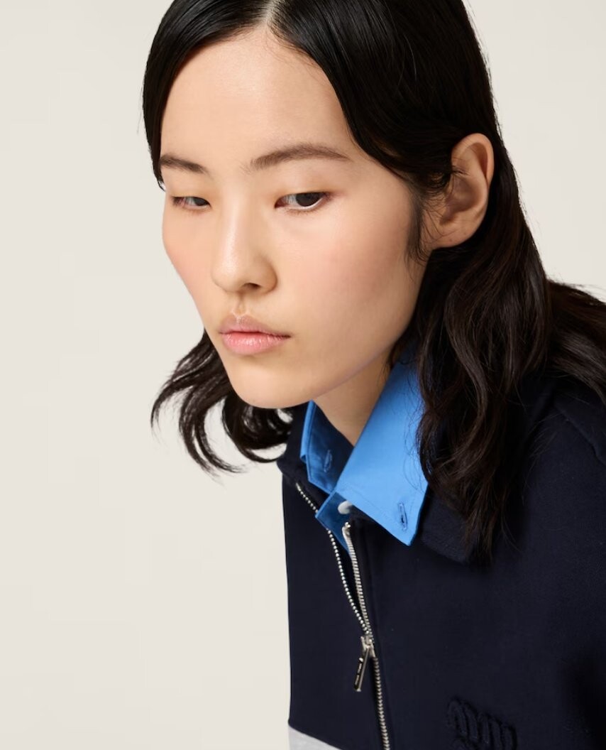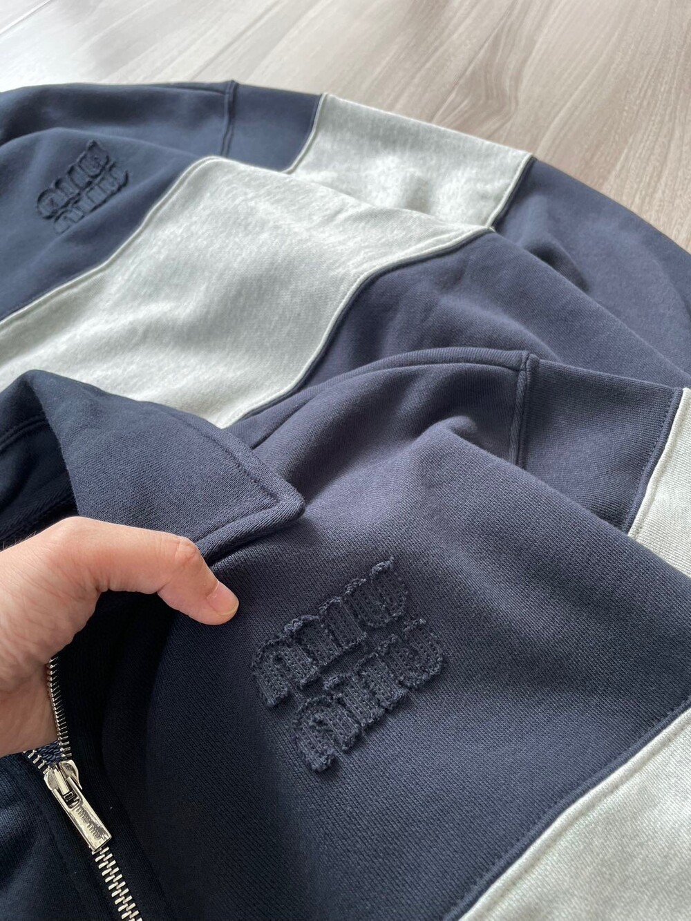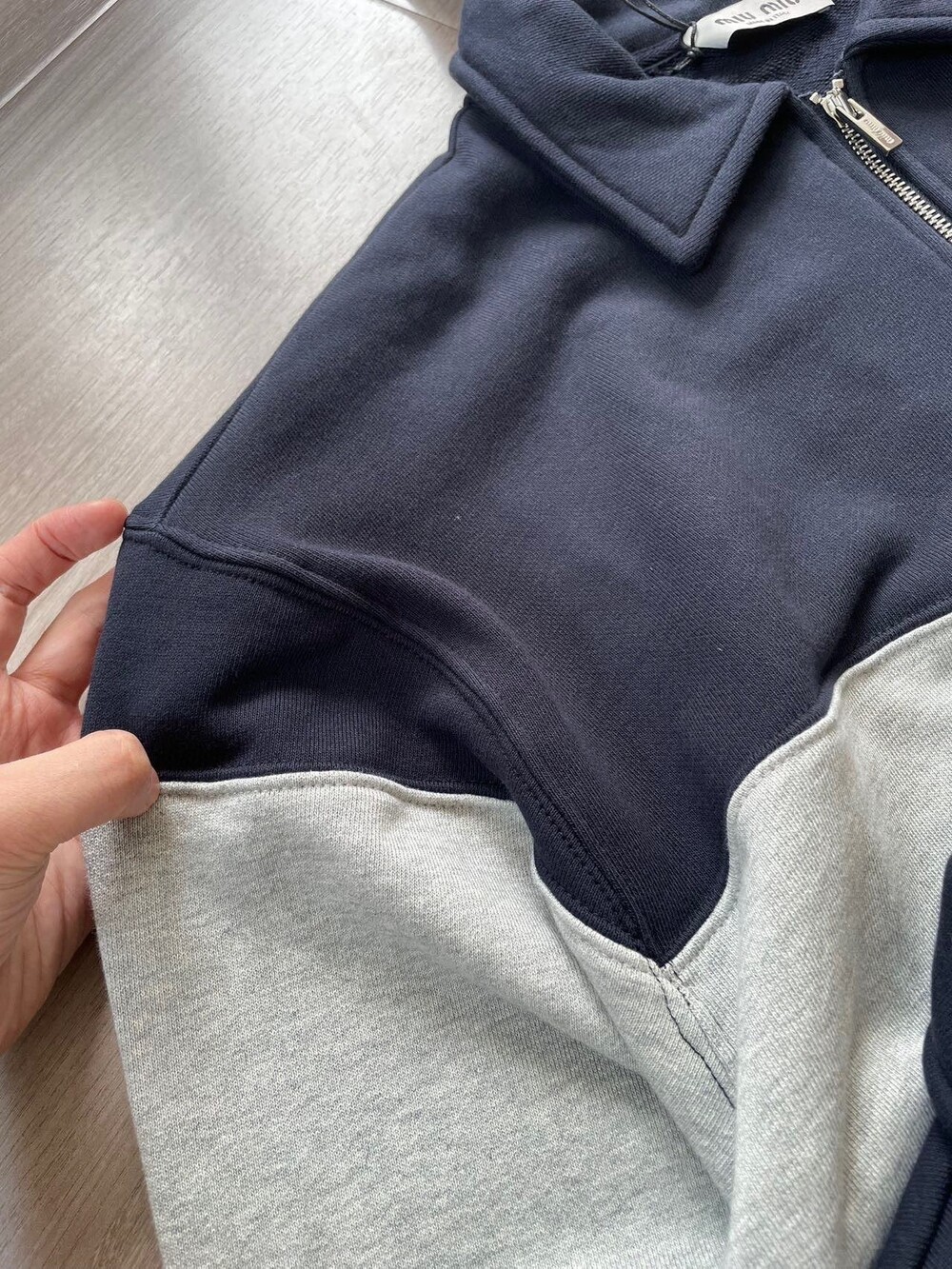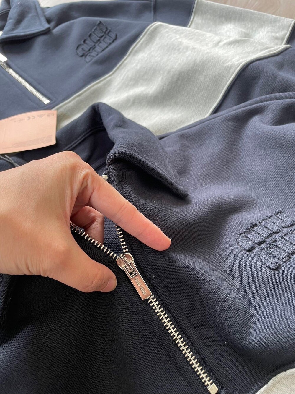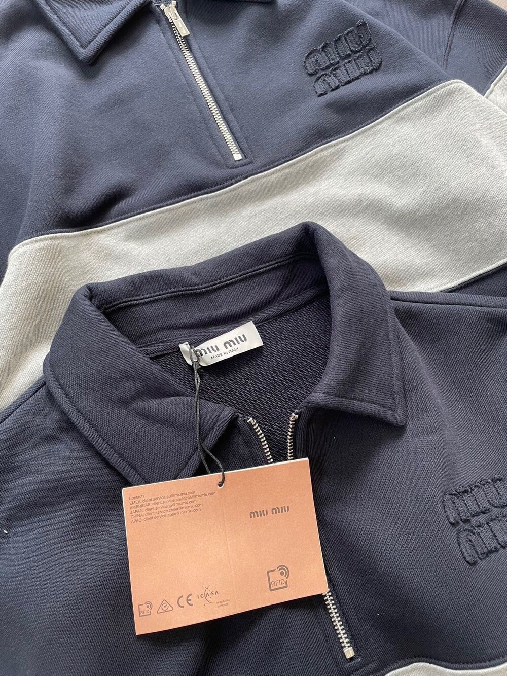#MU 하프 집업 스트라이프 스웨트셔츠