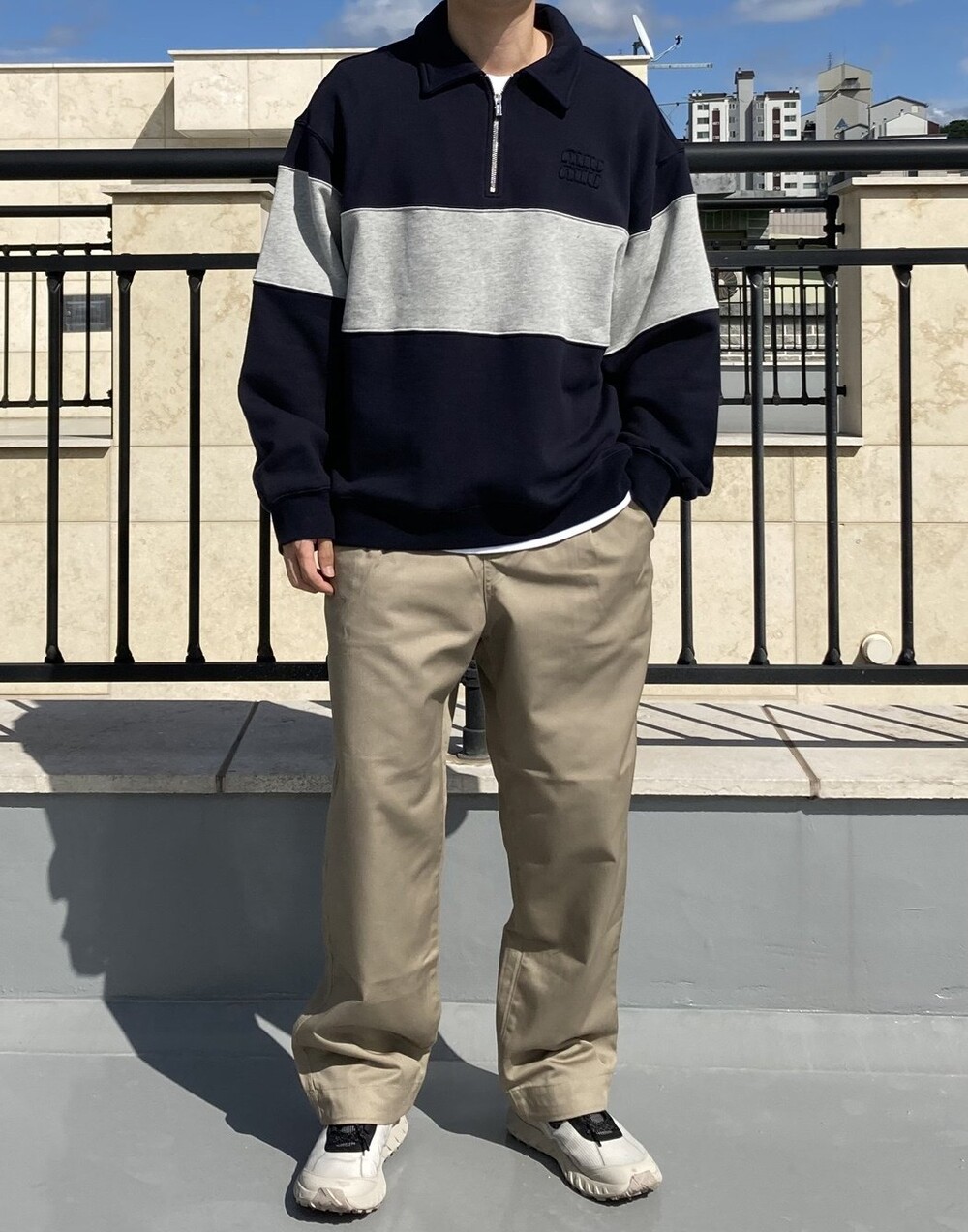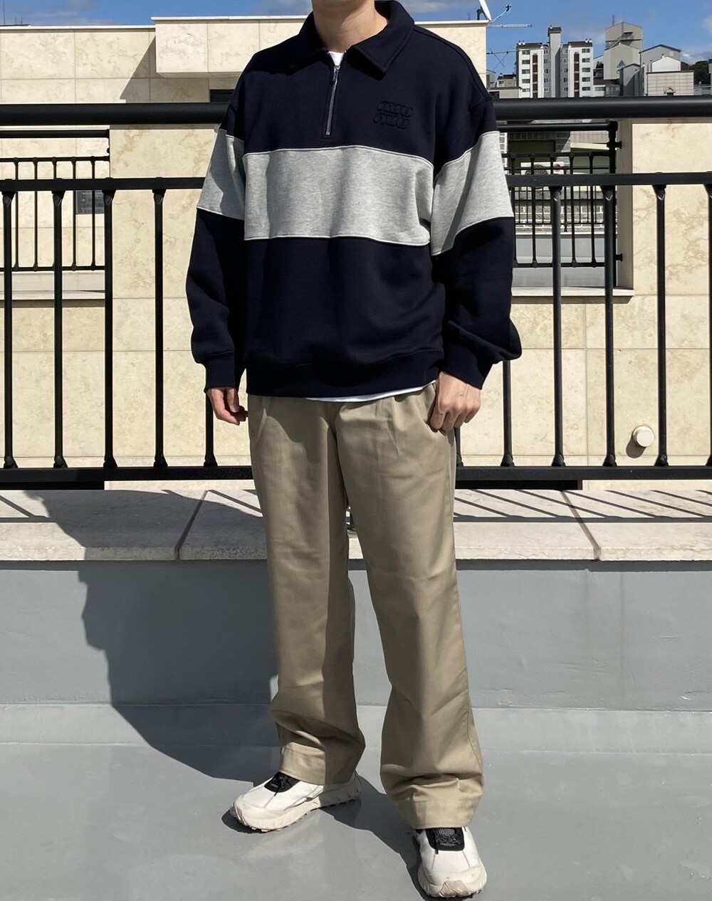 #MU 남녀 하프집업 스트라이프 맨투맨 n