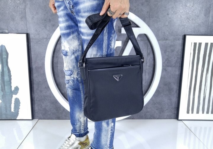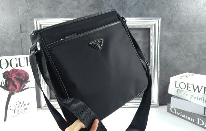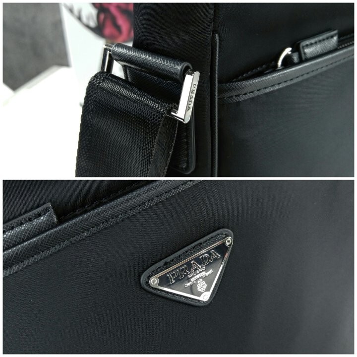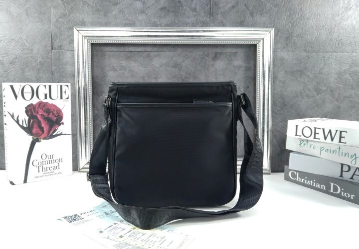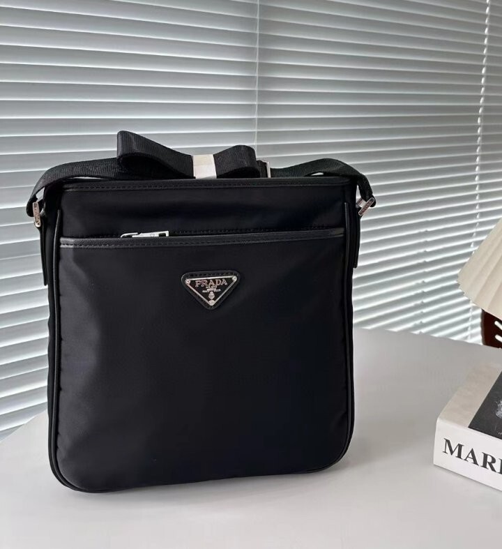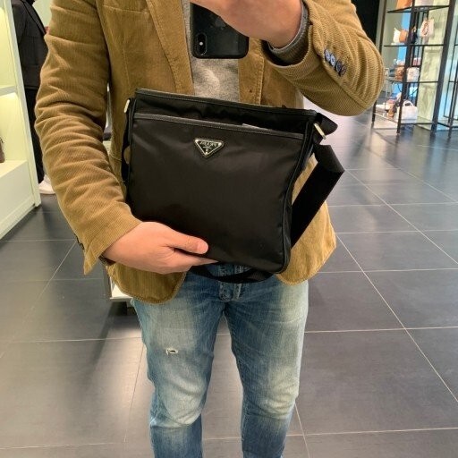 맞춤 조절형 우븐 나일론 테이프 숄더 스트랩이 제공되고 지퍼 클로저가 적용되었으며, 전면에 장식된 에나멜 메탈 트라이앵글 로고가 아이코닉한 감각을 더합니다.