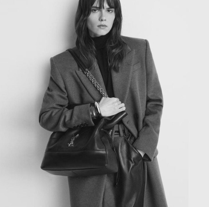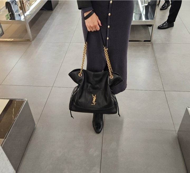 체인과 드로우스트링 타이로 측면을 원하는 대로 조이거나 펼쳐 다양한 실루엣 연출 가능.