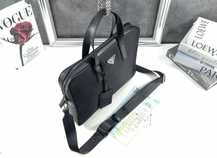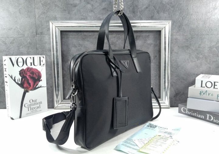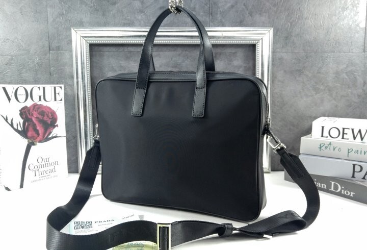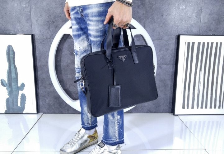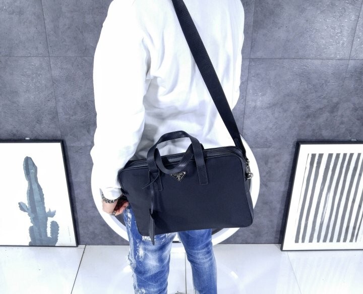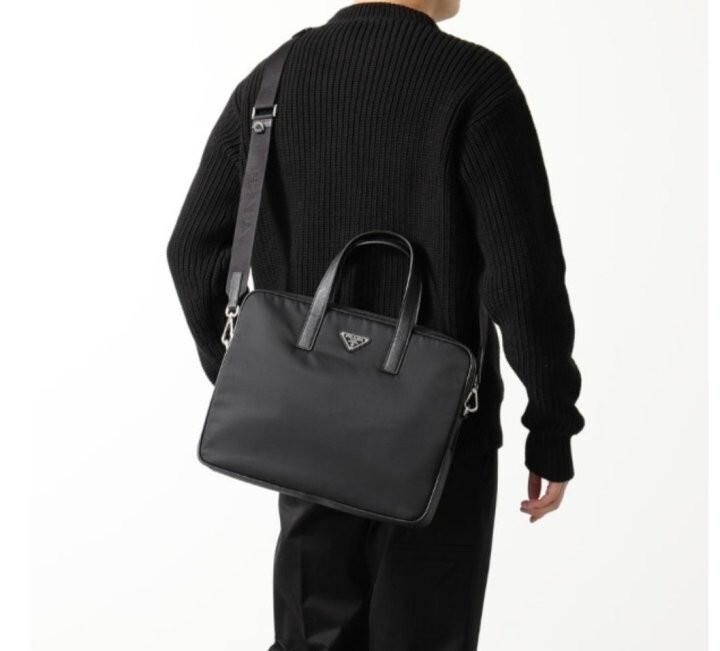 리나일론과 사피아노 가죽 디테일을 혼합하여 우아하고 활용성이 좋은 디자인으로 완성한 브리프케이스입니다.