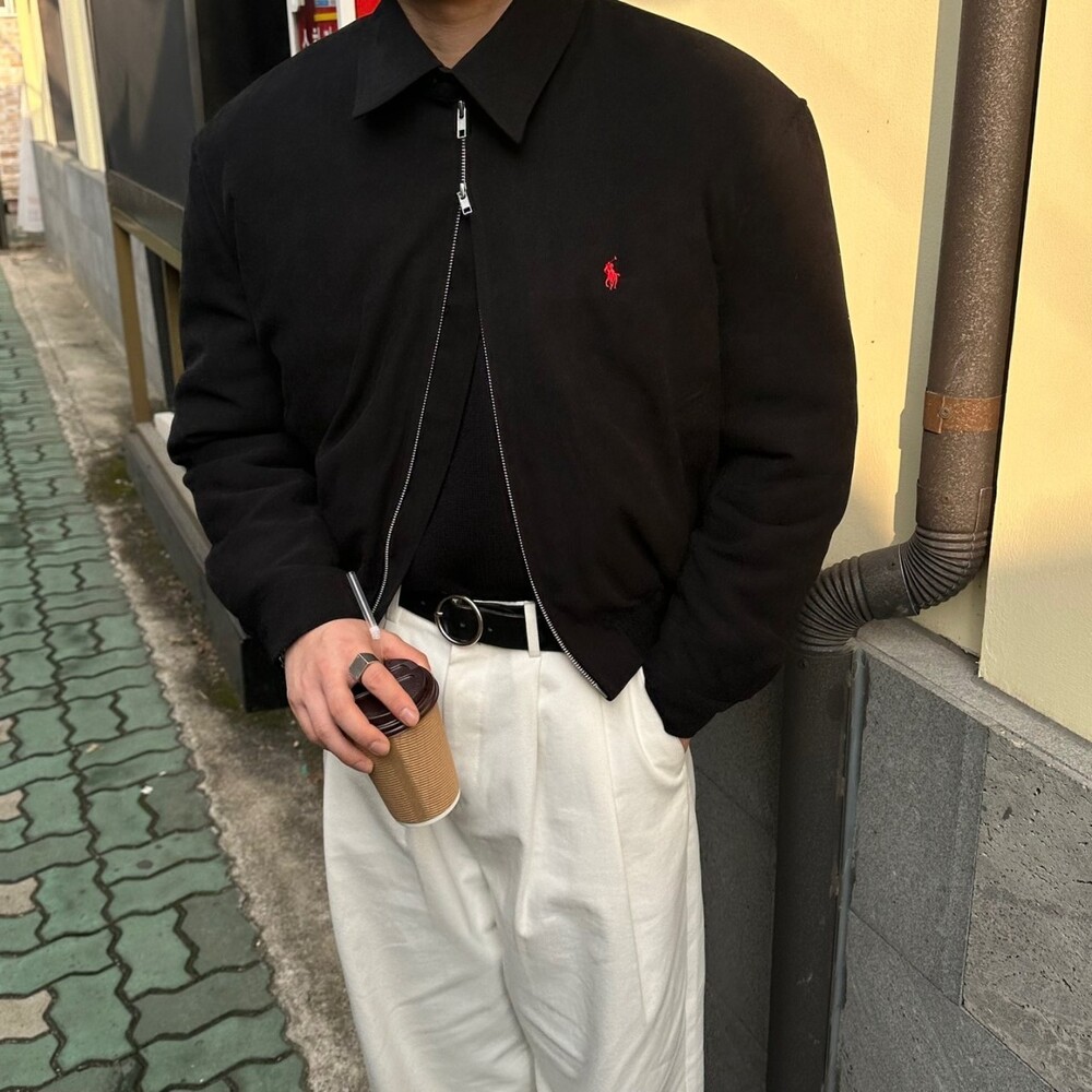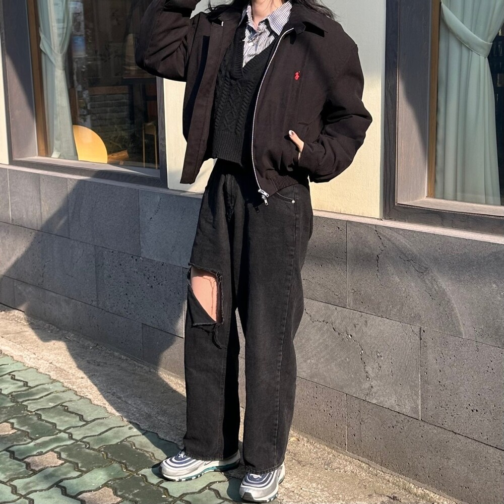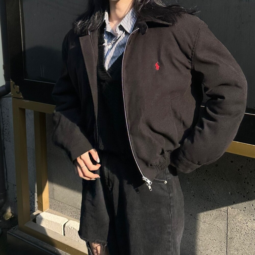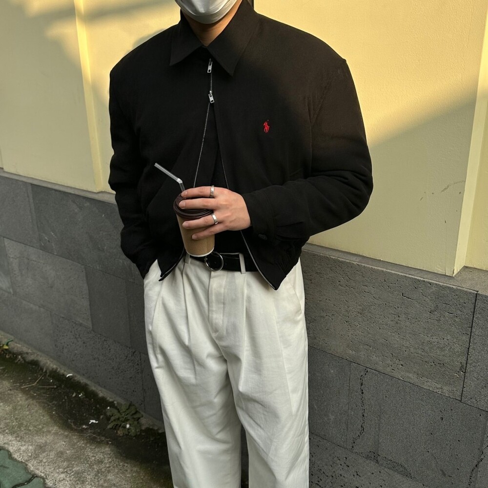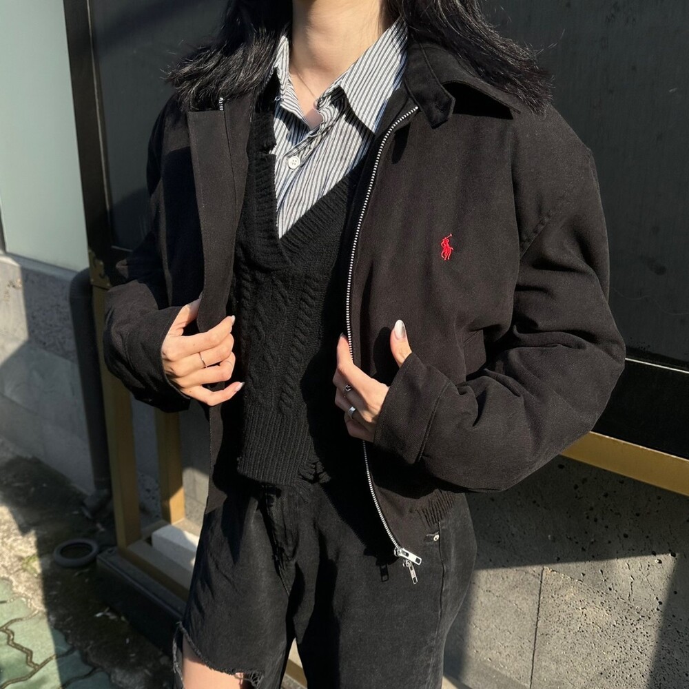 세미오버 핏에 크롭한 기장의 블루종 스타일이며 전체적으로 볼륨감 있어 보이며 너무 짧지도 길지도 않은 기장과 언발란스하게 마무리하여 착용시 핏이 이쁘게 떨어집니다