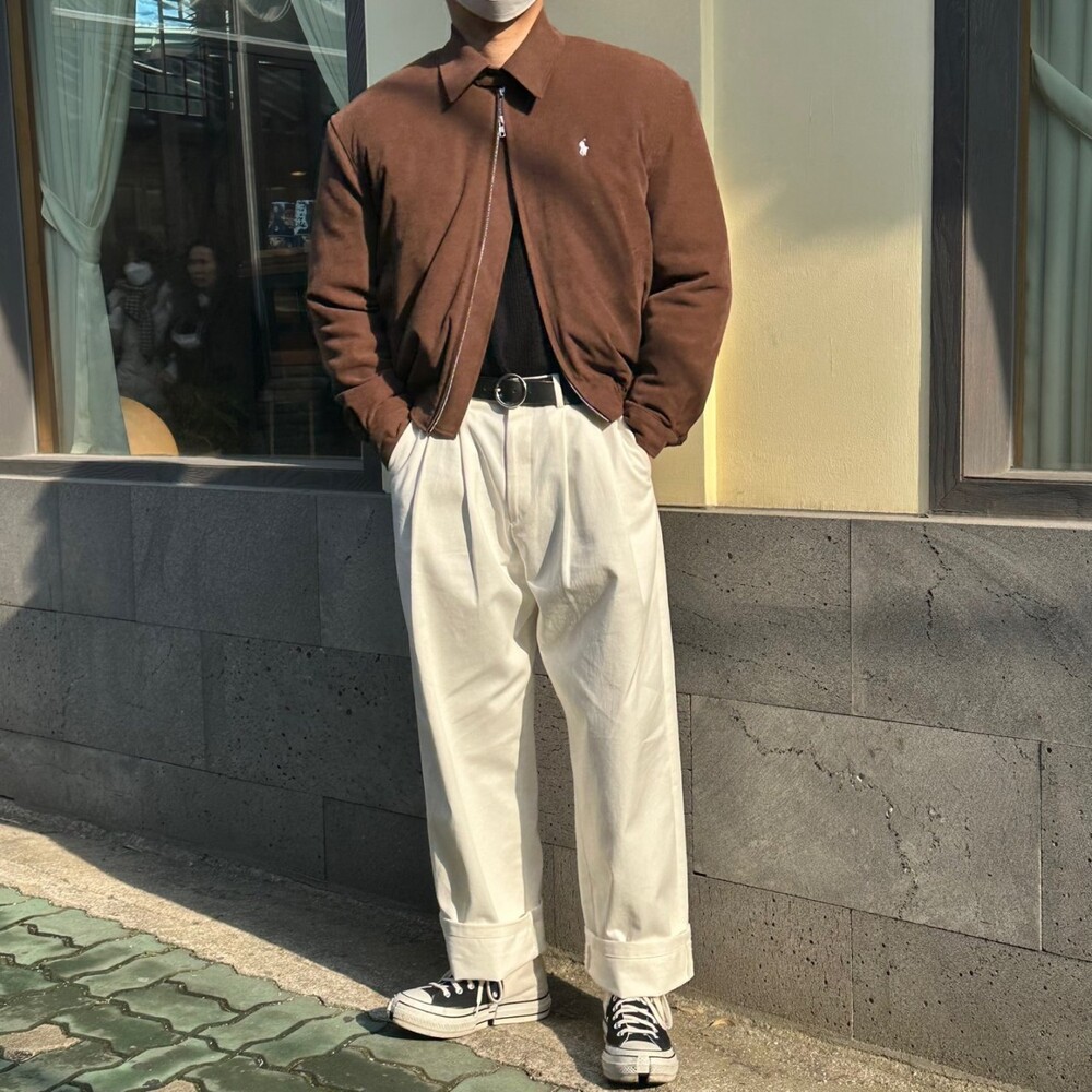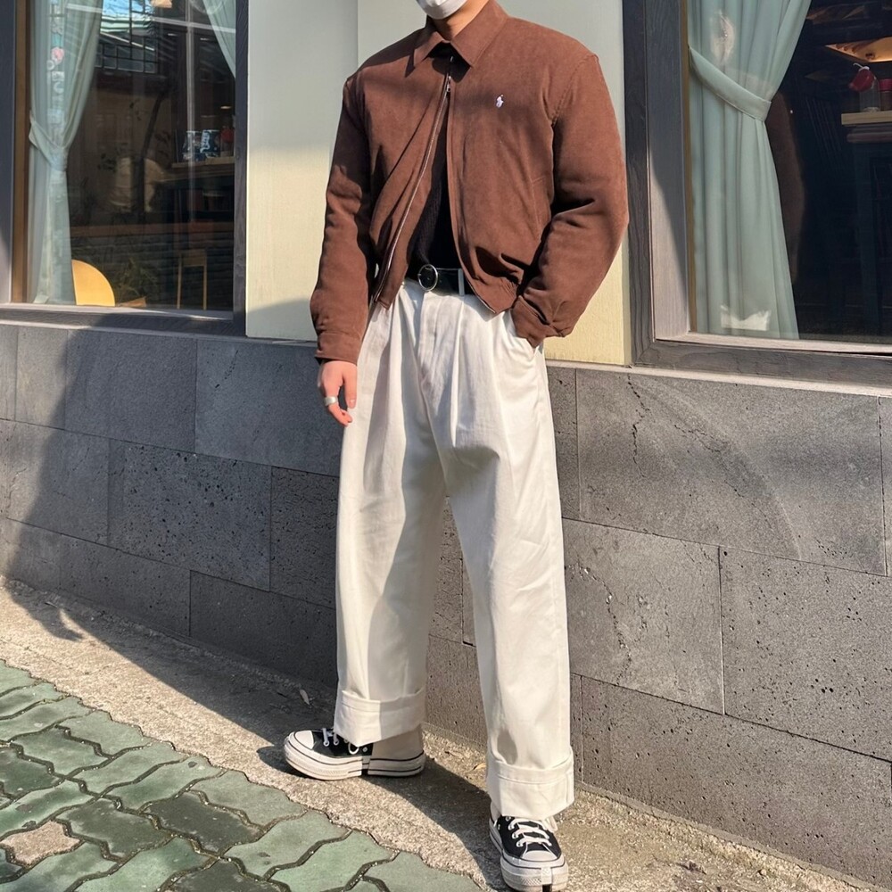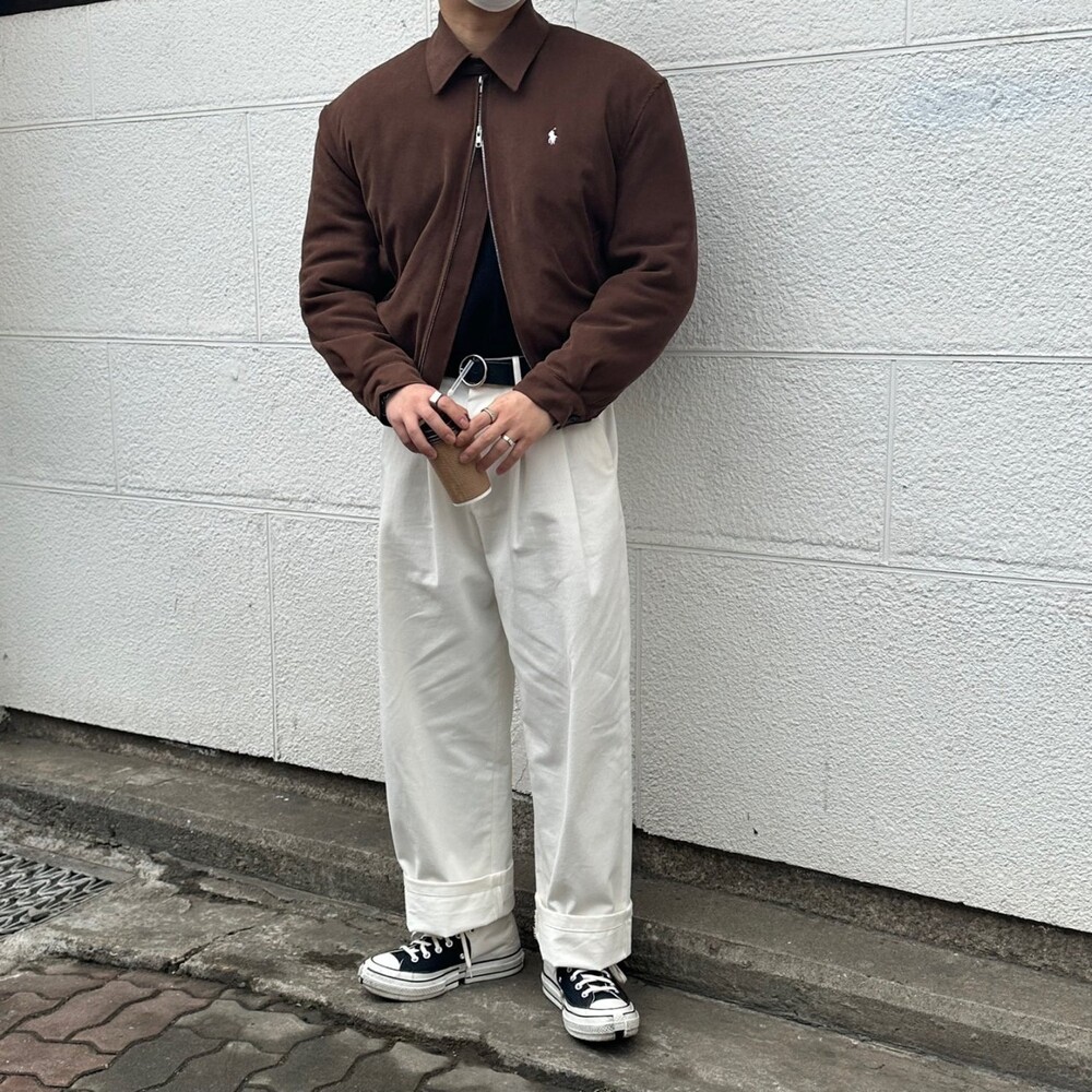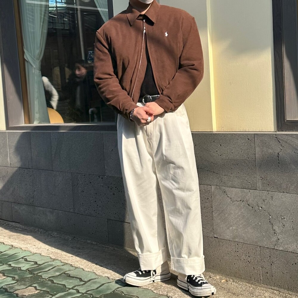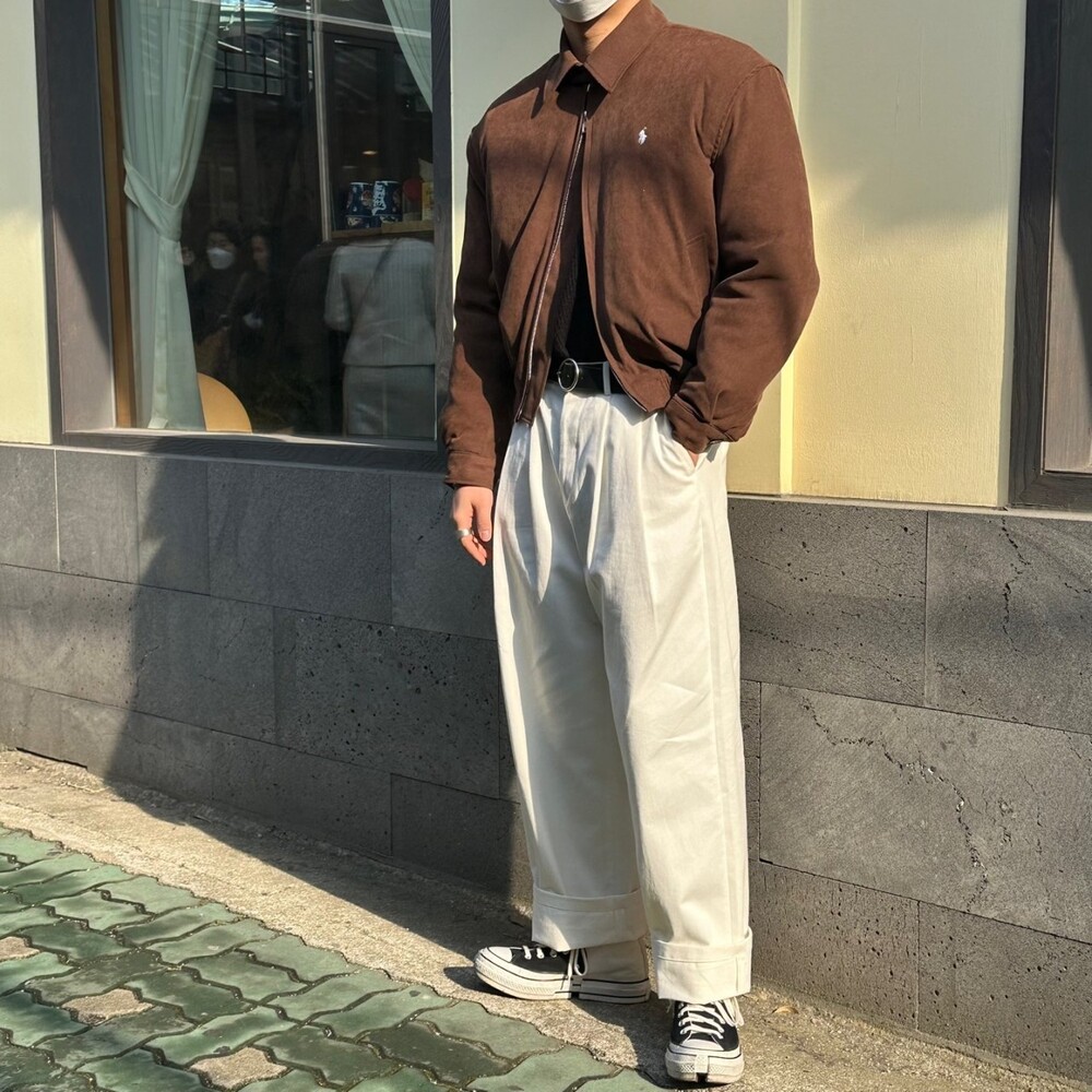 세미오버 핏에 크롭한 기장의 블루종 스타일이며 전체적으로 볼륨감 있어 보이며 너무 짧지도 길지도 않은 기장과 언발란스하게 마무리하여 착용시 핏이 이쁘게 떨어집니다