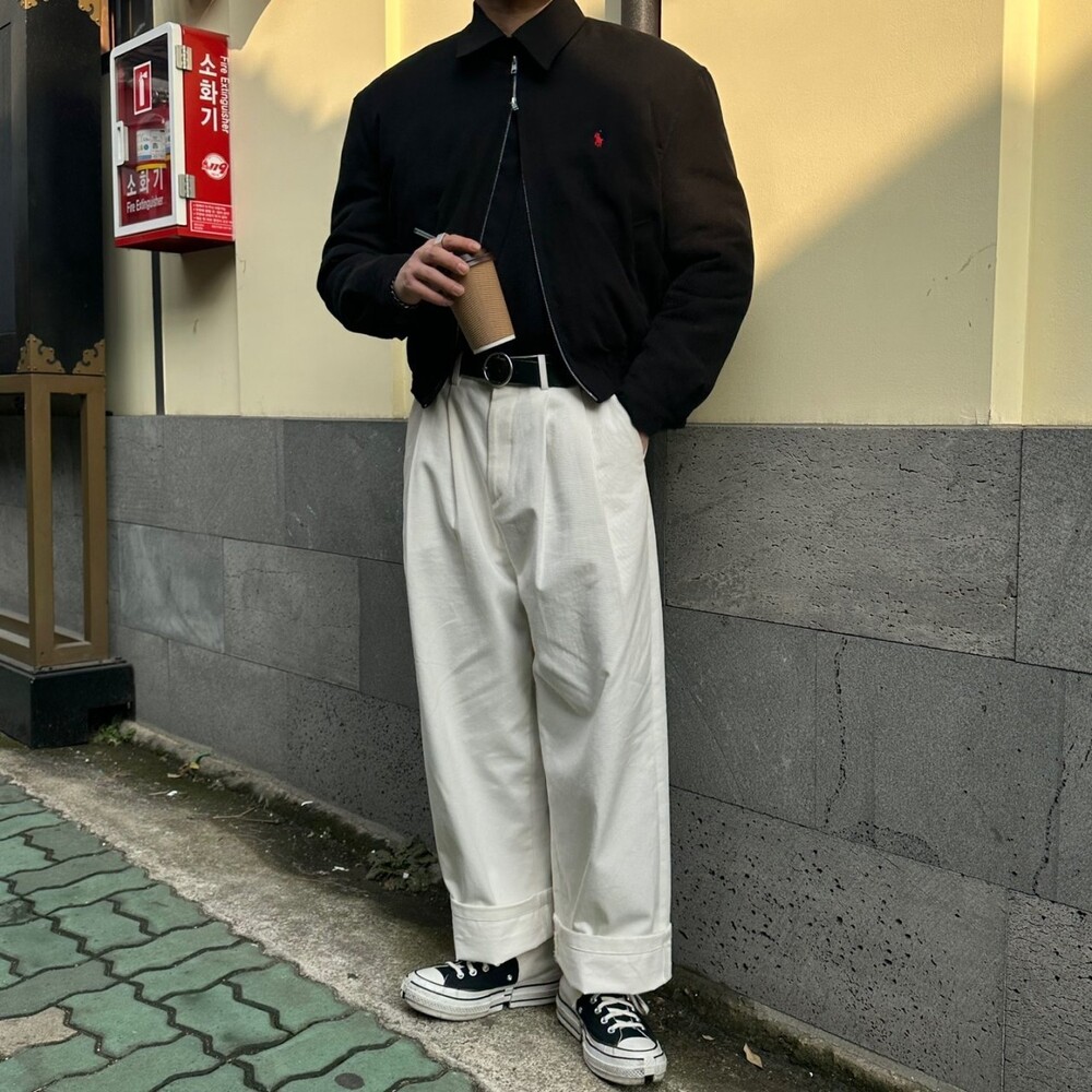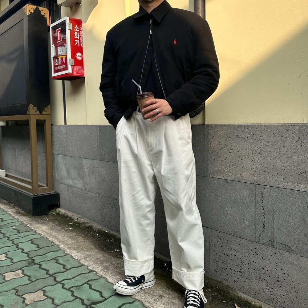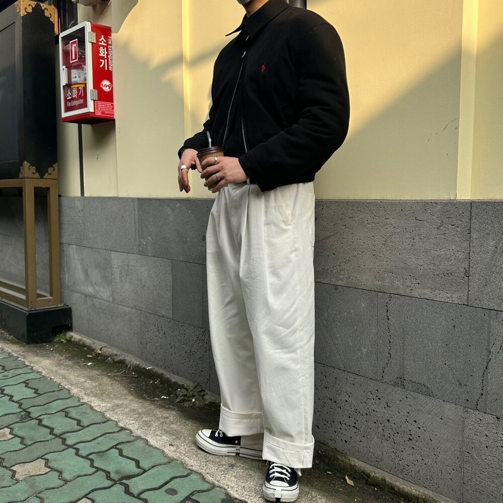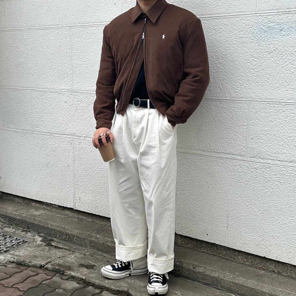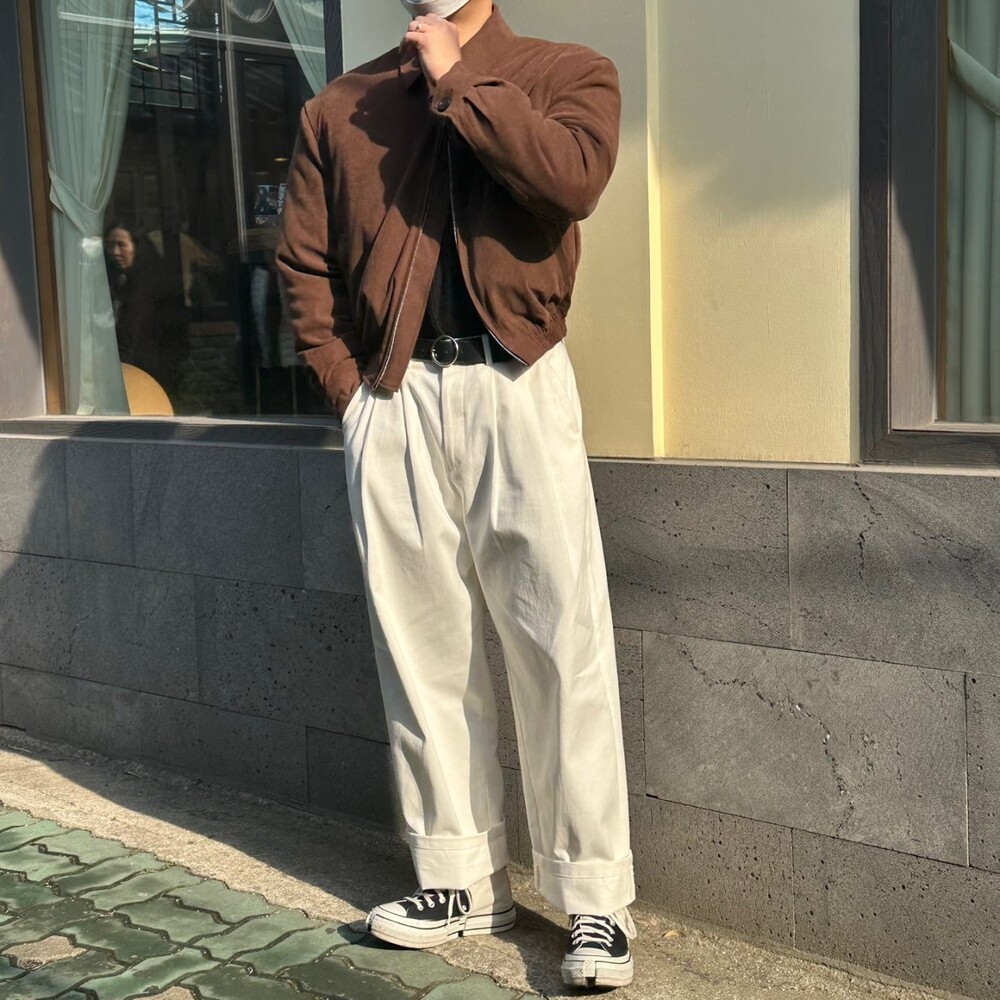 세미오버 핏에 크롭한 기장의 블루종 스타일이며 전체적으로 볼륨감 있어 보이며 너무 짧지도 길지도 않은 기장과 언발란스하게 마무리하여 착용시 핏이 이쁘게 떨어집니다
