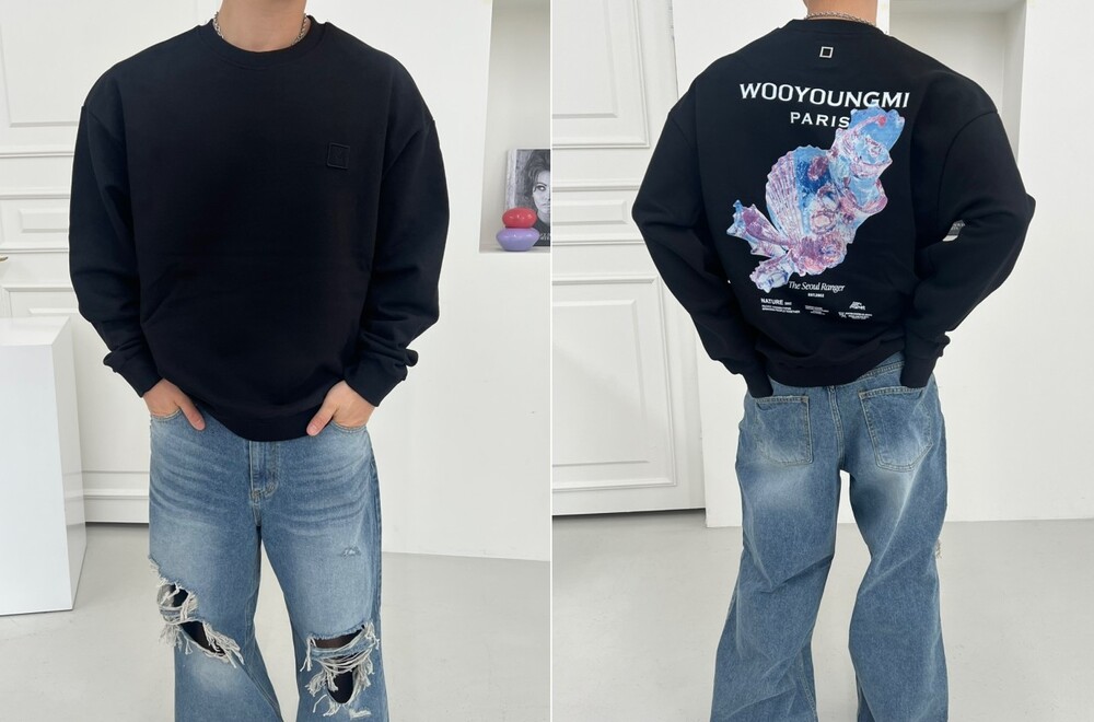 #YM 3D 코랄 백로고 맨투맨(블랙)