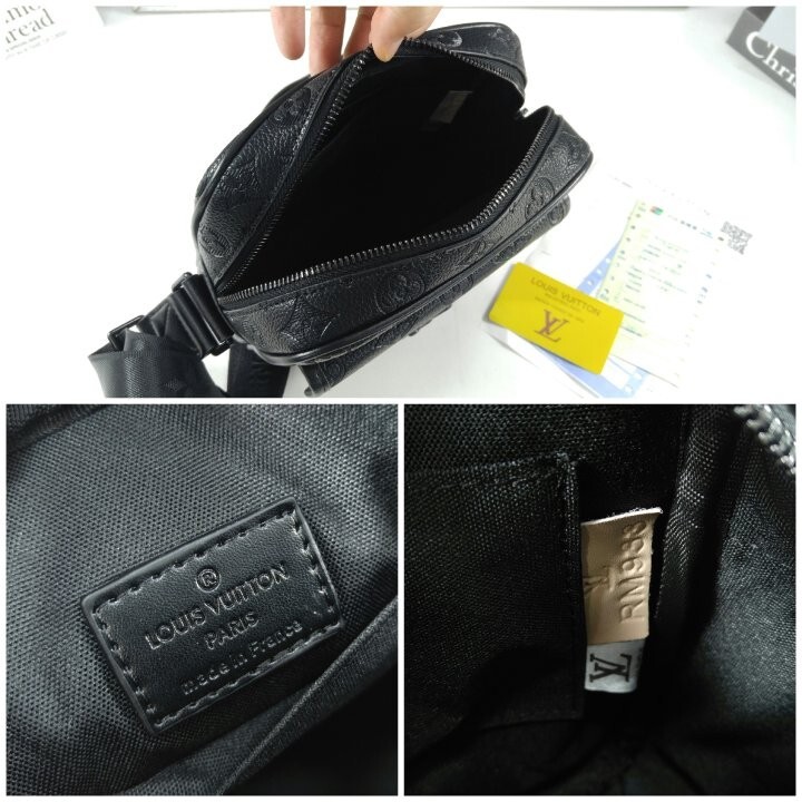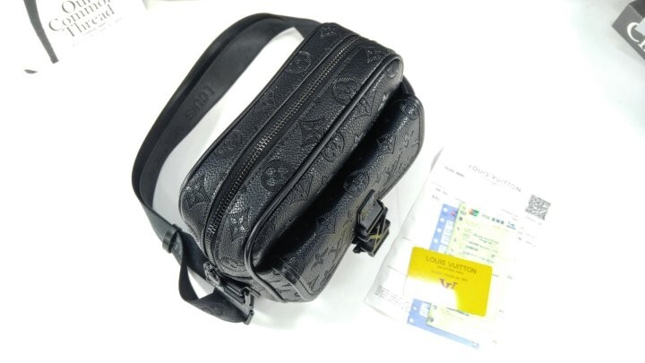 블랙 모노그램 섀도우 엠보스드 카우하이드 가죽 카우하이드 가죽 소재의 트리밍 텍스타일 소재의 안감 블랙 색상의 하드웨어 지퍼형 입구가 있는 메인 수납공간 LV 버클이 달린 앞면 플랩 포켓